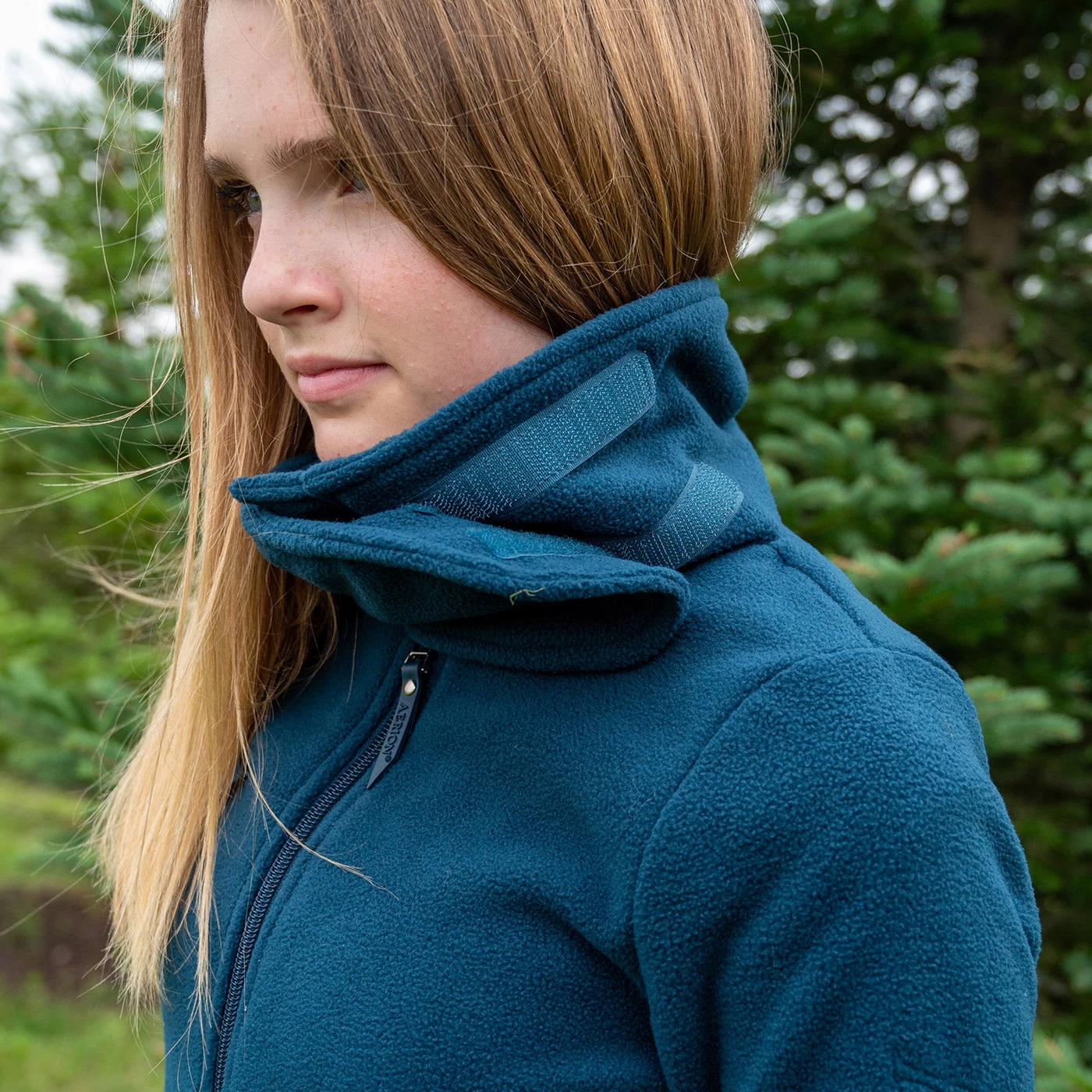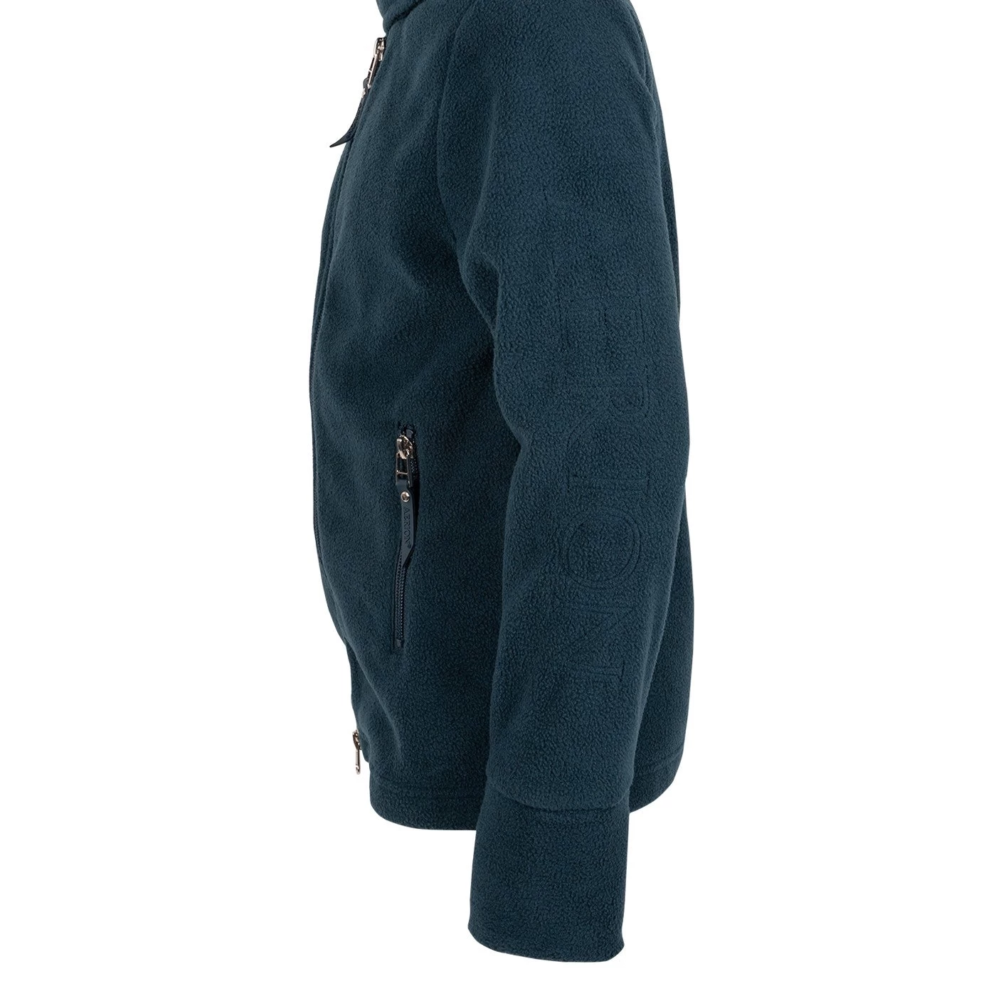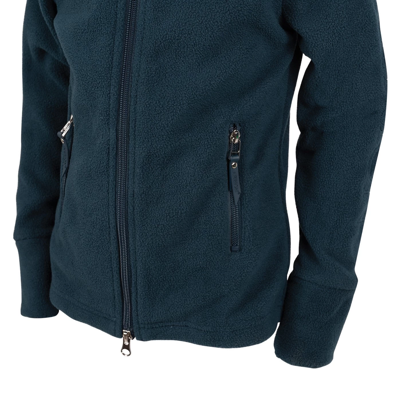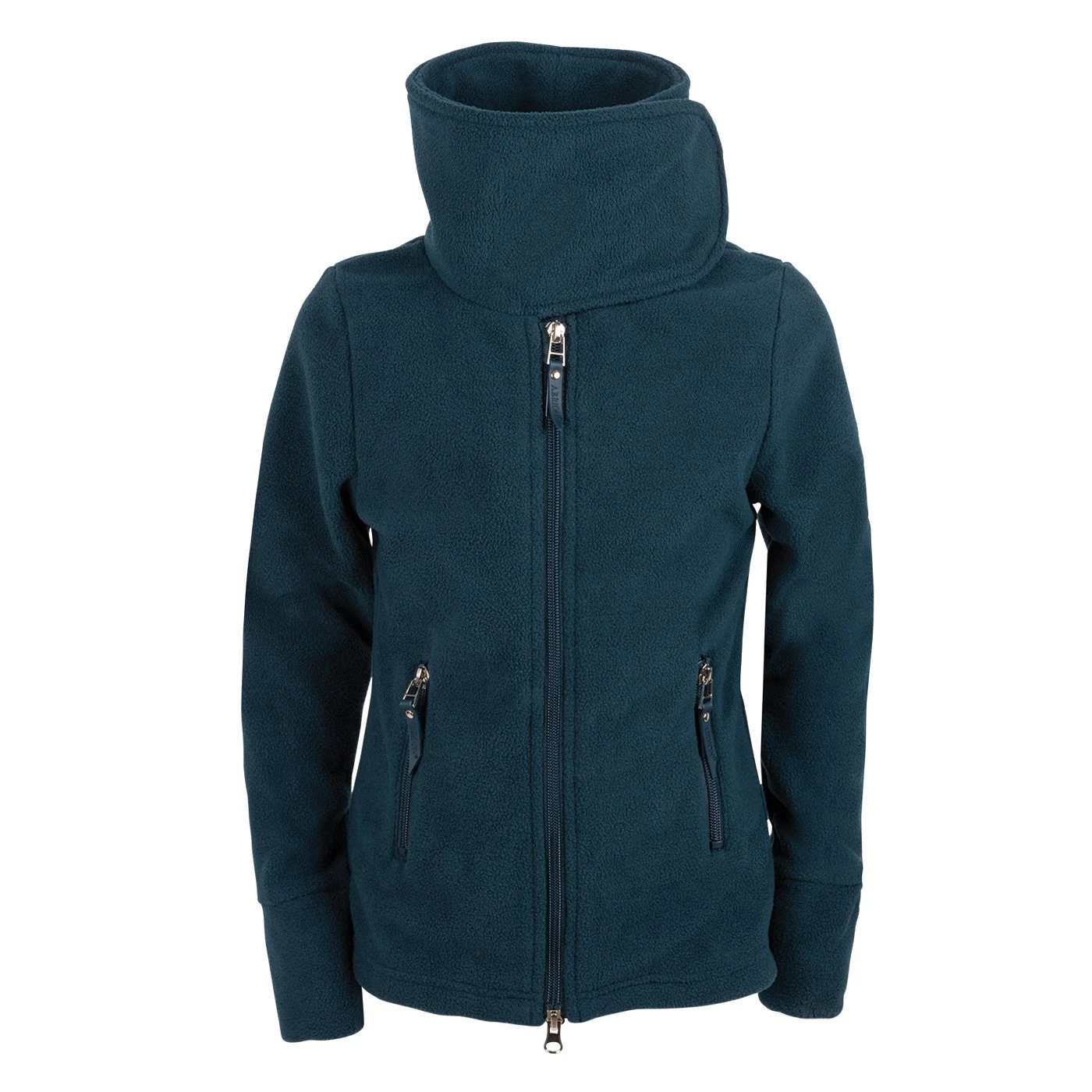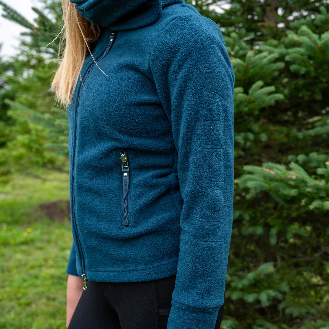 The Aerion Edie Fleece Jacket offers a fitted, and cozy fleece jacket with a wide overlapping collar to help keep you warm in or out of the saddle. The overlapping collar may be worn open or closed, to eliminate the need for a scarf. Features an underlaid 2-way front zip, front zippered pockets, cuffs with thumb holes, and Aerion embroidery on the sleeve. Perfect for chilly morning rides or for layering in winter months.