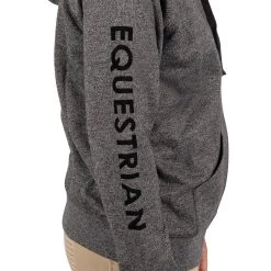 The Aerion Equestrian Full Zip Hoodie offer a comfortable option for after riding or while lounging around the house. Features a full zip front, hood and two front pockets. Complete with the Aerion Equestrian logo at the chest, and “equestrian” text down the sleeve.