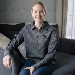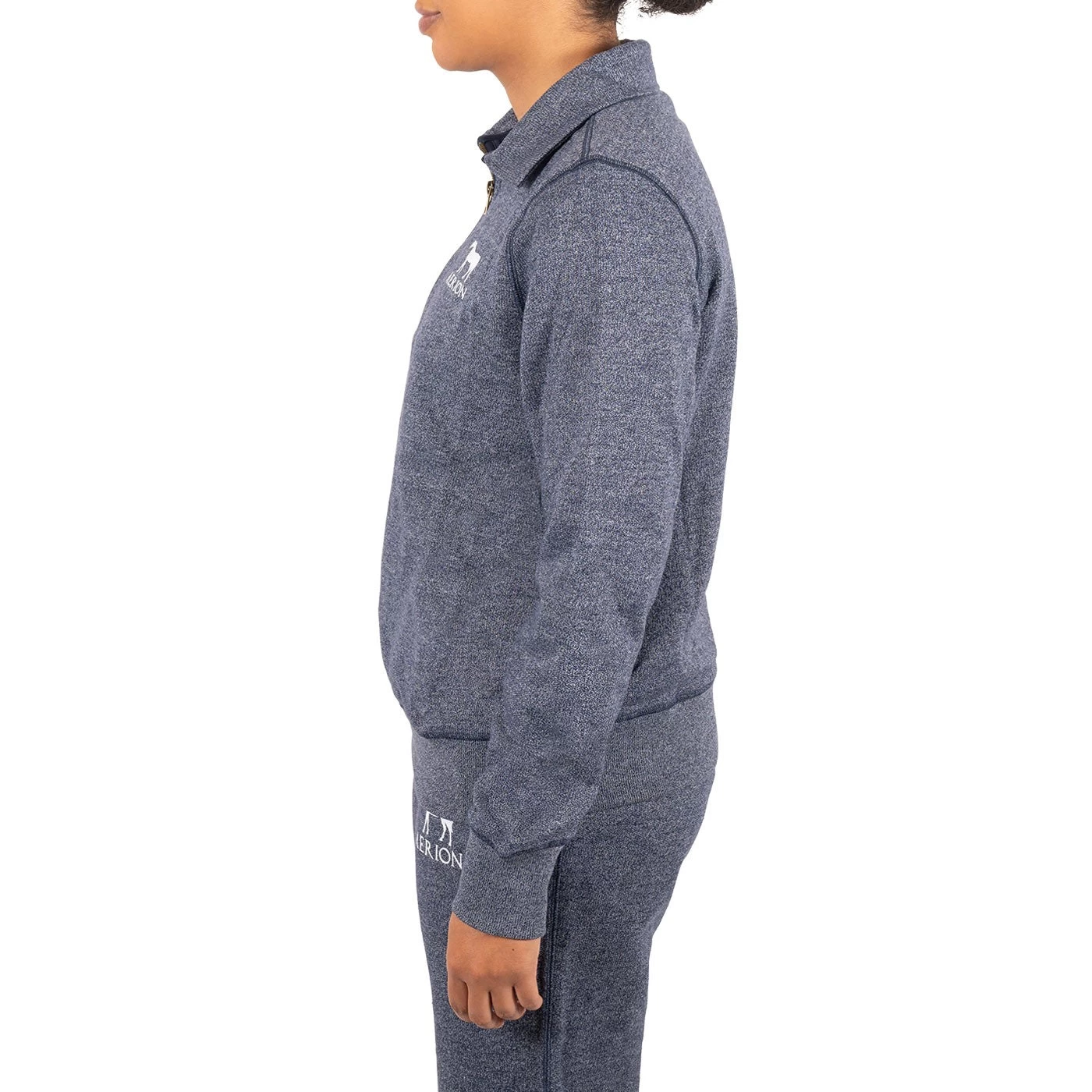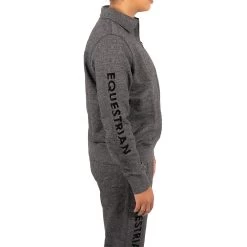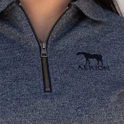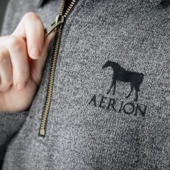 The Aerion Equestrian Quarter Zip Polo Sweatshirt is comfortable and casual for everyday wear. Perfect for throwing on after a ride, or while lounging around the house. Features a pull-over design with a quarter zip front, and a collared neckline. Complete with the Aerion logo on the chest and equestrian print down the sleeve.
