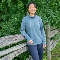 The Aerion Lola Fleece Top will help to keep you warm and cozy! Created with a pullover design and a drawstring at the neck. Perfect for pairing with breeches or for lounging around the house.