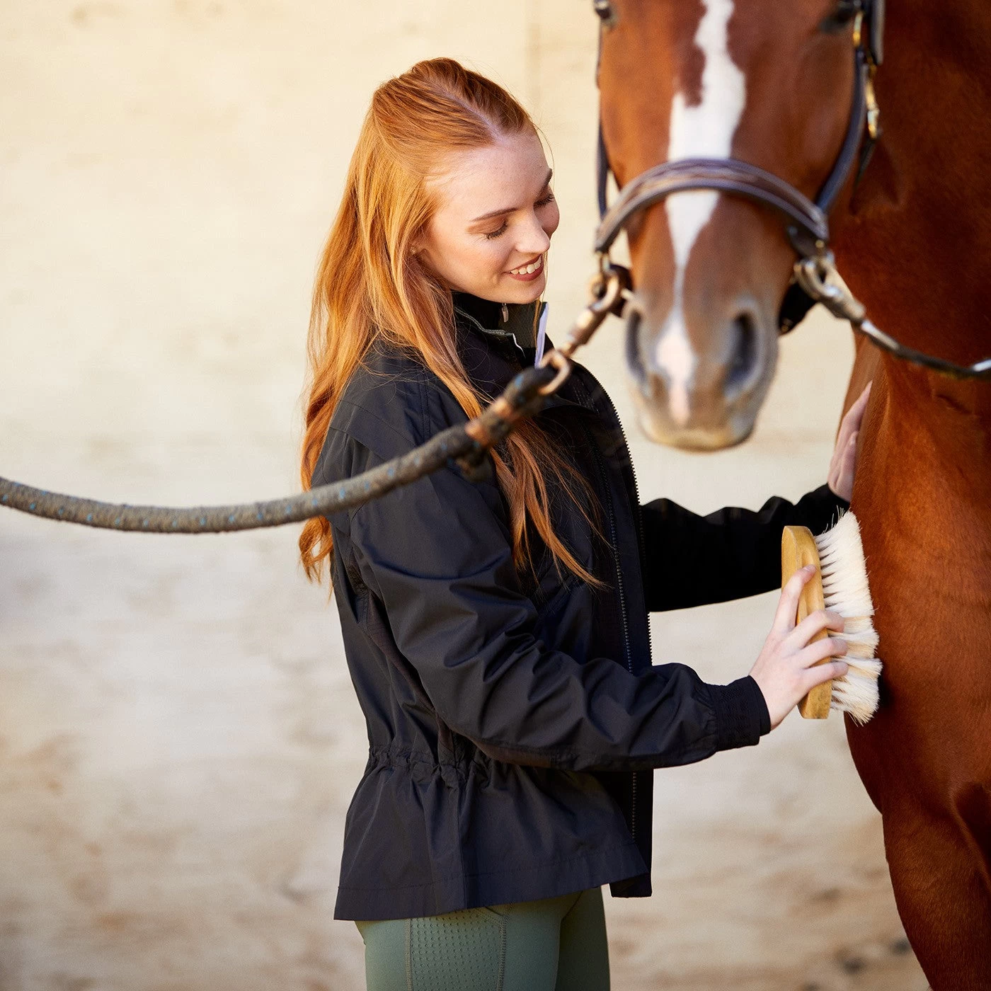 Ariat’s Breathe Series is designed to keep riders cool, comfortable, and confident in and out of the saddle. Features a lightweight recycled polyester shell, a modern silhouette with a cinch at the waist, and a wind/water resistant exterior. Complete with vented functionality at the back, and logo elastic taping.