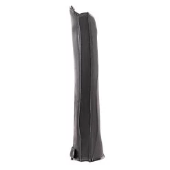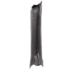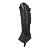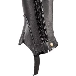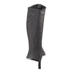 Spanish-cut half chap is crafted in butter-soft, genuine leather and is stylishly finished with patent leather trim. Synthetic reinforcement at the inner calf offers enhanced grip and resilience against everyday wear, while the elastic gusset down the length of the zipper ensure and optimal fit. Complete with a side zipper and snap.