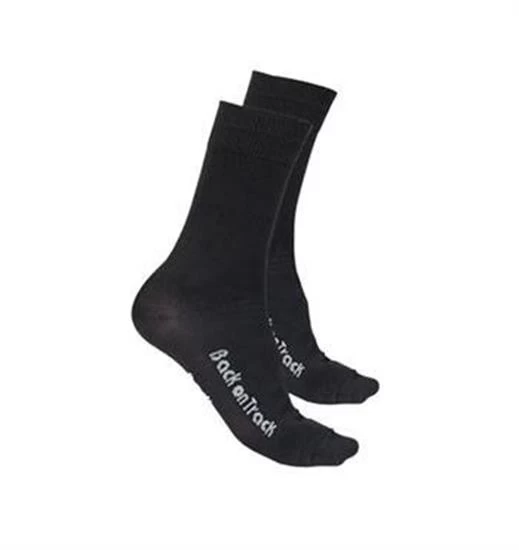 Comfortable enough for all-day wear, Back On Track’s socks incorporate Welltex® technology, a therapeutic fabric for humans, horses, and dogs which increases the micro-circulation of the blood and oxygen delivery when worn against the skin. When a Welltex® product is used, the energy produced by the body is absorbed by the ceramic minerals in the fabric’s thread and translated back to the body as Far Infrared energy waves. Back On Track’s socks concentrate those energy waves into the feet and ankles, promoting circulation while keeping toes cozy and warm during cold weather riding.