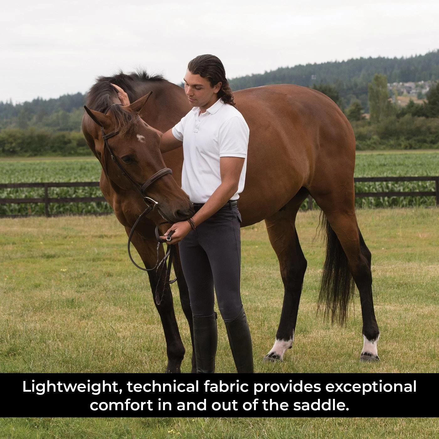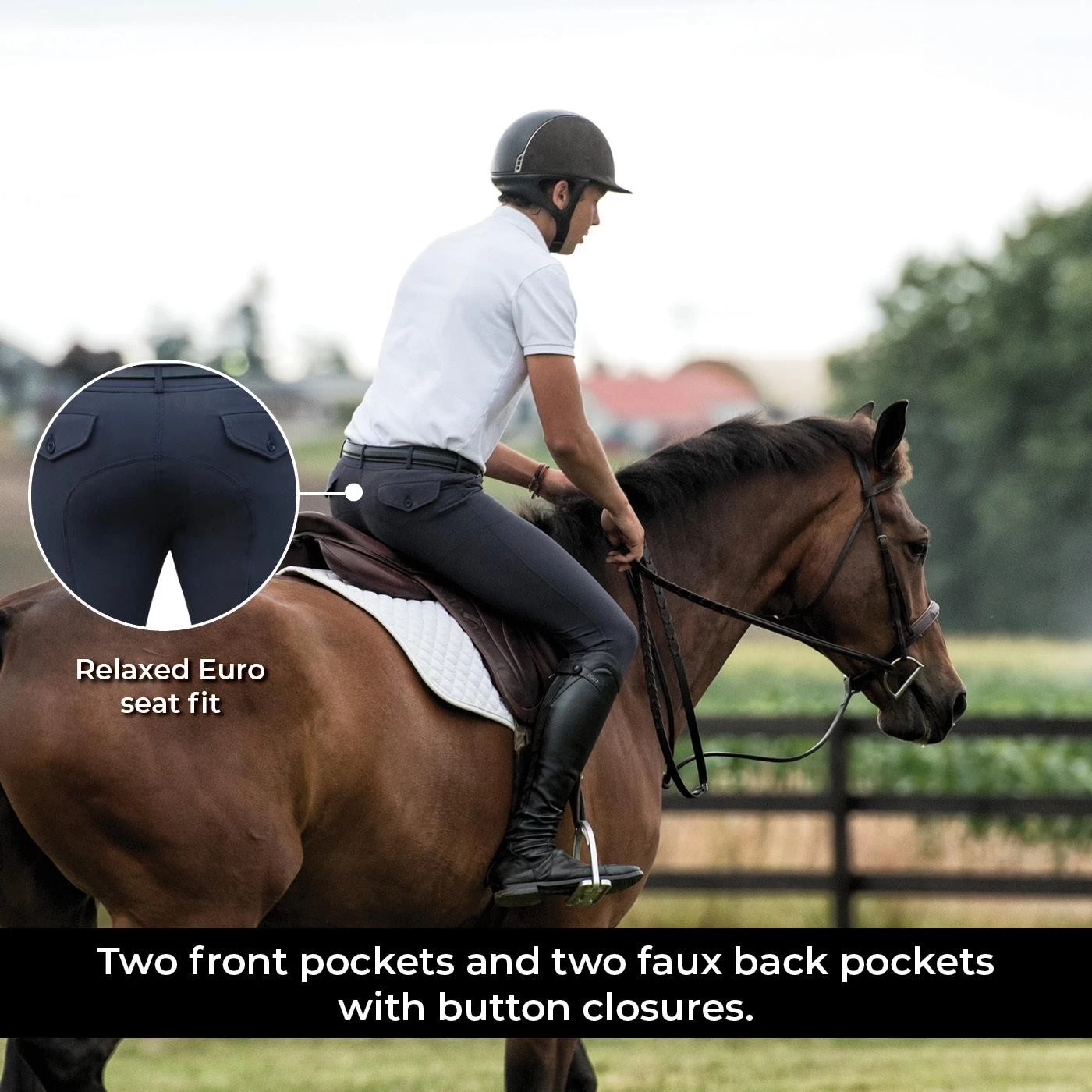 - Stretchy panel at the ankle helps eliminate bulk under breeches