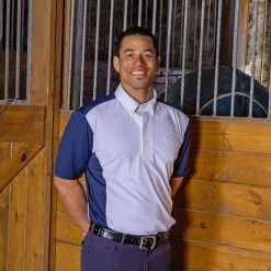 Exclusive to Greenhawk, and designed for men, this short sleeve, colour block show shirt features a button down collar and tie holder. With built in UV protection and made from moisture wicking fabric with cooling properties this show shirt will keep you looking and feeling great this show season.