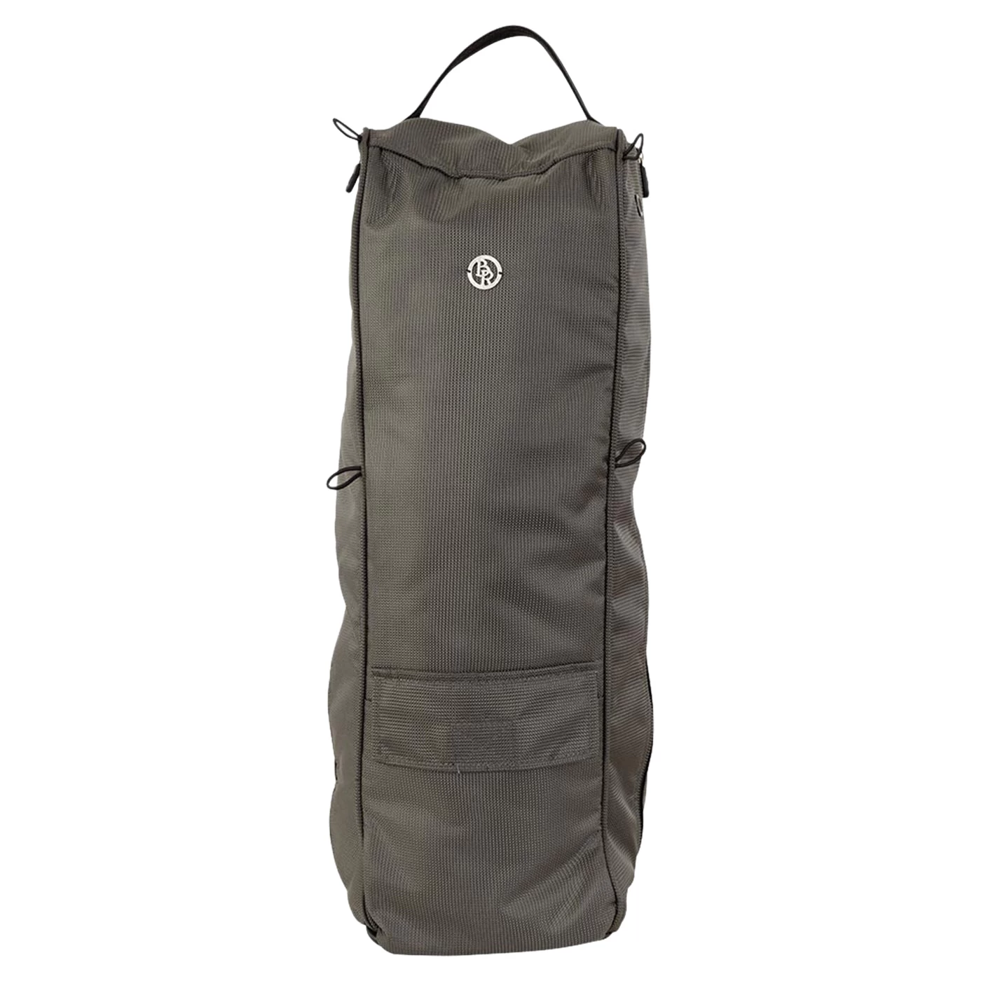 The BR Boot Bag offers a convenient bag to store your boots and whip while on the go. Helps to protect your boots against damage and dirt during transportation or storage. Features vent holes to air out your boots with separated compartments and zipper closures. Complete with an additional outer pocket with Velcro, a reinforced bottom with supportive studs, and elasticated whip loops.
