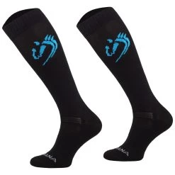 Perfect for schooling or at the show, Dreamers & Schemers boot socks are suitable for use under tall boots and feature a breathable construction with a thinly padded cotton terry footbed for all day comfort. The inclusion of a flat seam toe helps to eliminate rubbing and the padded footbed carries up the back of the sock to help protect your heel. Complete with a multi-coloured pony and macaroni design.