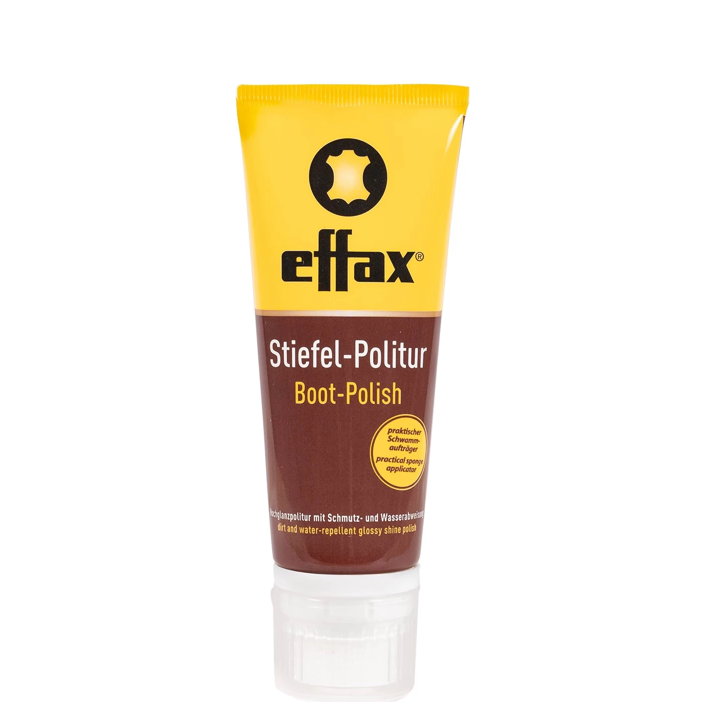 Effax Boot Polish gives a glossy shine to leather riding boots. The dirt- and water-repellent effect means the boots can always be polished up again quite easily! It’s strikingly simple: Clean the boots, apply the polish sparingly and polish with a clean cloth after allowing to dry. It’s perfectly simple – and your boots will have a perfect shine. Made without parabens! Contains: lanolin, bees’ wax.