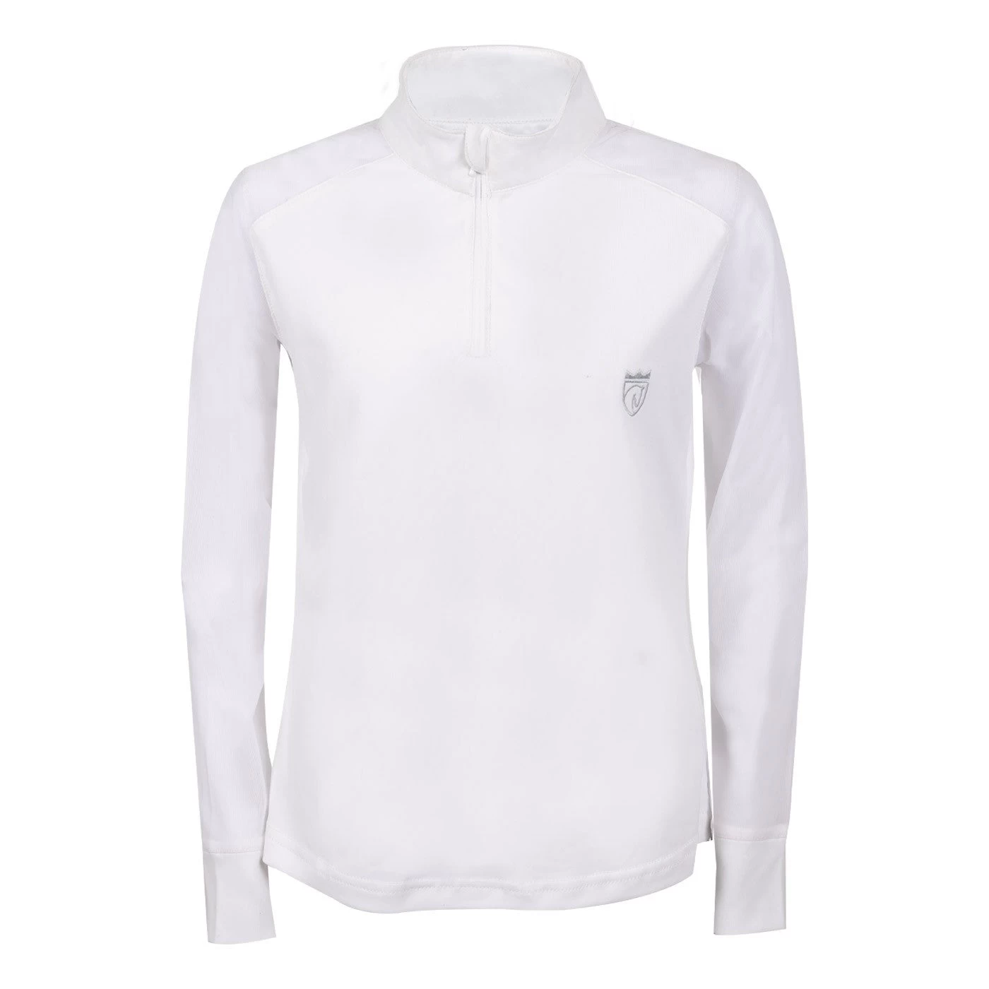 The Elation Platinum Amalfi Long Sleeve Show Shirt helps to keep you cool while competing with EquiCool fabric and mesh long sleeves for added breathability. Complete with an embroidered logo on the chest, a zippered front, and neck guard.
