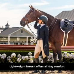 The Elation Platinum Chelsea Breech that you know and love, now with a high waistband! Traditional in style and tailored in fit, the Elation Platinum Chelsea Breech is designed for the competitive equestrian with a flair for fashion. Constructed from a lightweight, stretch fabric, complete with contrasting knee patches made from premium RIMA leather. These on-trend breeches are finished with a Euro-Seat design and Demi-Cut Sport Stretch ankles for a smooth, snug fit. Show ring style or schooling staple, the Elation Platinum Chelsea Breech is sure to make a statement in your riding wardrobe.