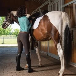 The Elation Platinum Full Seat Breech offers European Micro Fabric Technology in a custom woven, 4-way stretch performance breech with a premium RIMA leather full seat, slightly lowered waistband and meticulous attention to detail. The performance fabric construction offers superb breathability and wicking for the ultimate in stretch comfort and exceptional show ring looks. Complete with fully finished seams, trimmed front pockets, high tensile stitch threads, reinforced belt loops, Gutos button closure, front zip fly and Sport Stretch™ ankles for a smooth, snug fit.