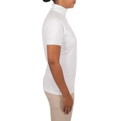 The Elation Platinum Grace 2.0 Show Shirt offers a breathable and quick-drying performance shirt, suitable for the competition ring. An updated version of the original Grace Show Shirt, this enhanced version features a perforated construction on the short sleeves and centre back for added ventilation. Complete with a snap closure at the neck for ease, and Elation embroidery at the chest.