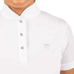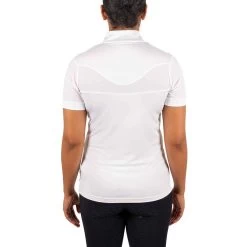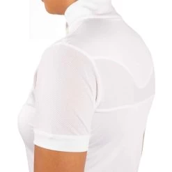 The Elation Platinum Helena Short Sleeve Show Shirt will help to keep you cool, comfortable, and stylish in the competition ring! Crafted with breathable, and quick-drying performance fabric to keep you comfortable in and out of the saddle with mesh inserts on the sleeve for added breathability. Features a contoured insert on the back for added ventilation and is complete with clear rhinestone button detailing.