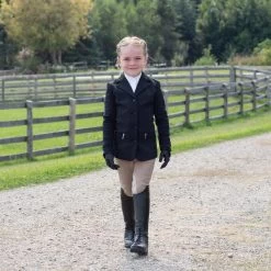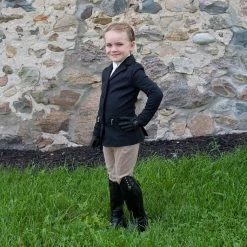 Exclusive to Greenhawk, this popular 4 button show jacket is made from 90% nylon and 10% spandex making for a very comfortable fit. Featuring zippered pockets and black faux, suede trim on the collar and pockets, this stylish show jacket is the perfect choice this season for the show ring. Now available in kids’ sizes