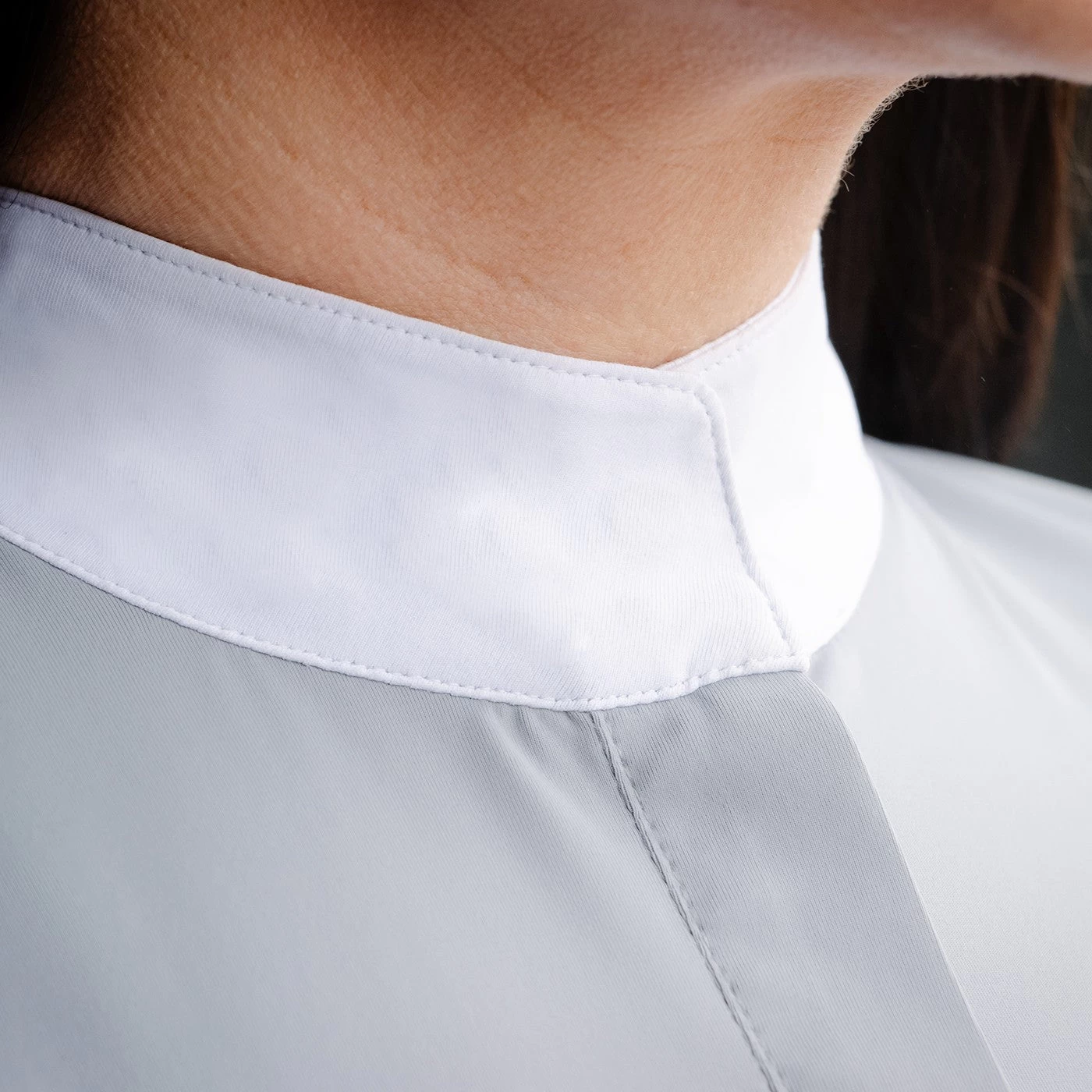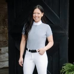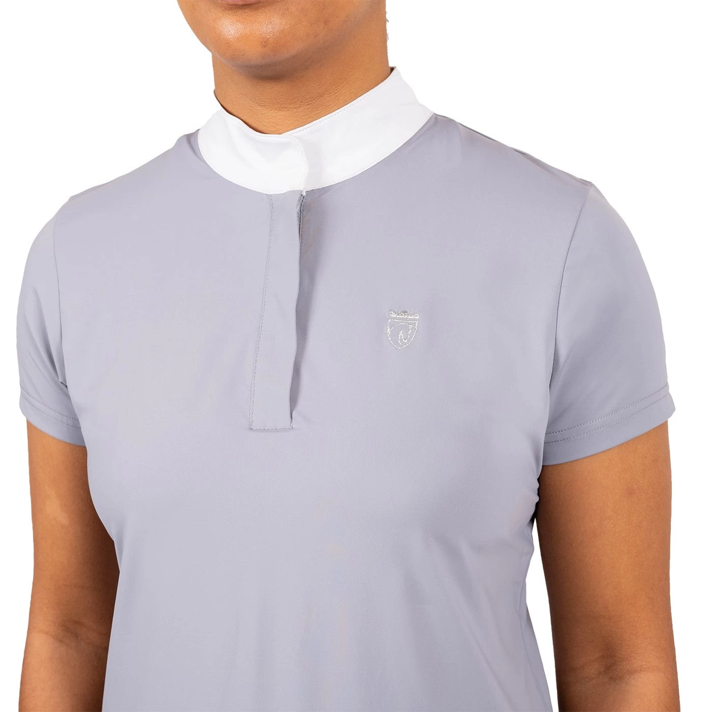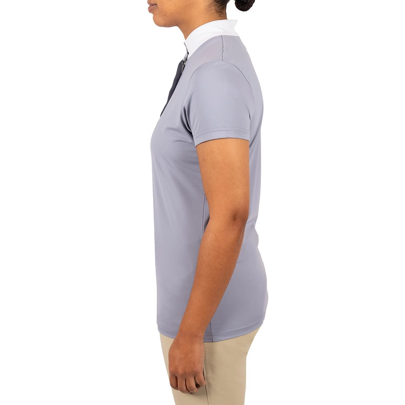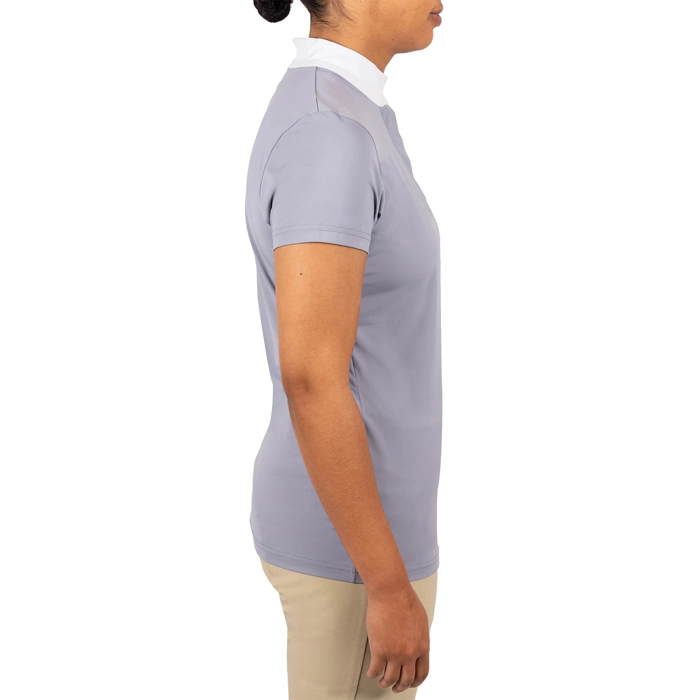 Designed with a hidden zip neck closure for optimal comfort and ease of use, the Elation Platinum Millie Short Sleeve Show Shirt is perfect for your summer show season. Stylish and functional, the sleek, modern shirt offers a quick-dry, cooling effect. Created in lightweight, stretch polyester spandex for exceptional breathability.