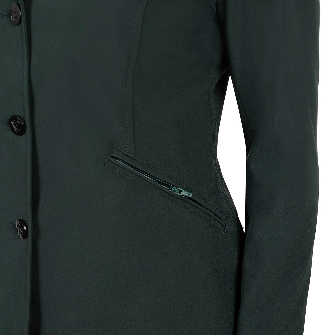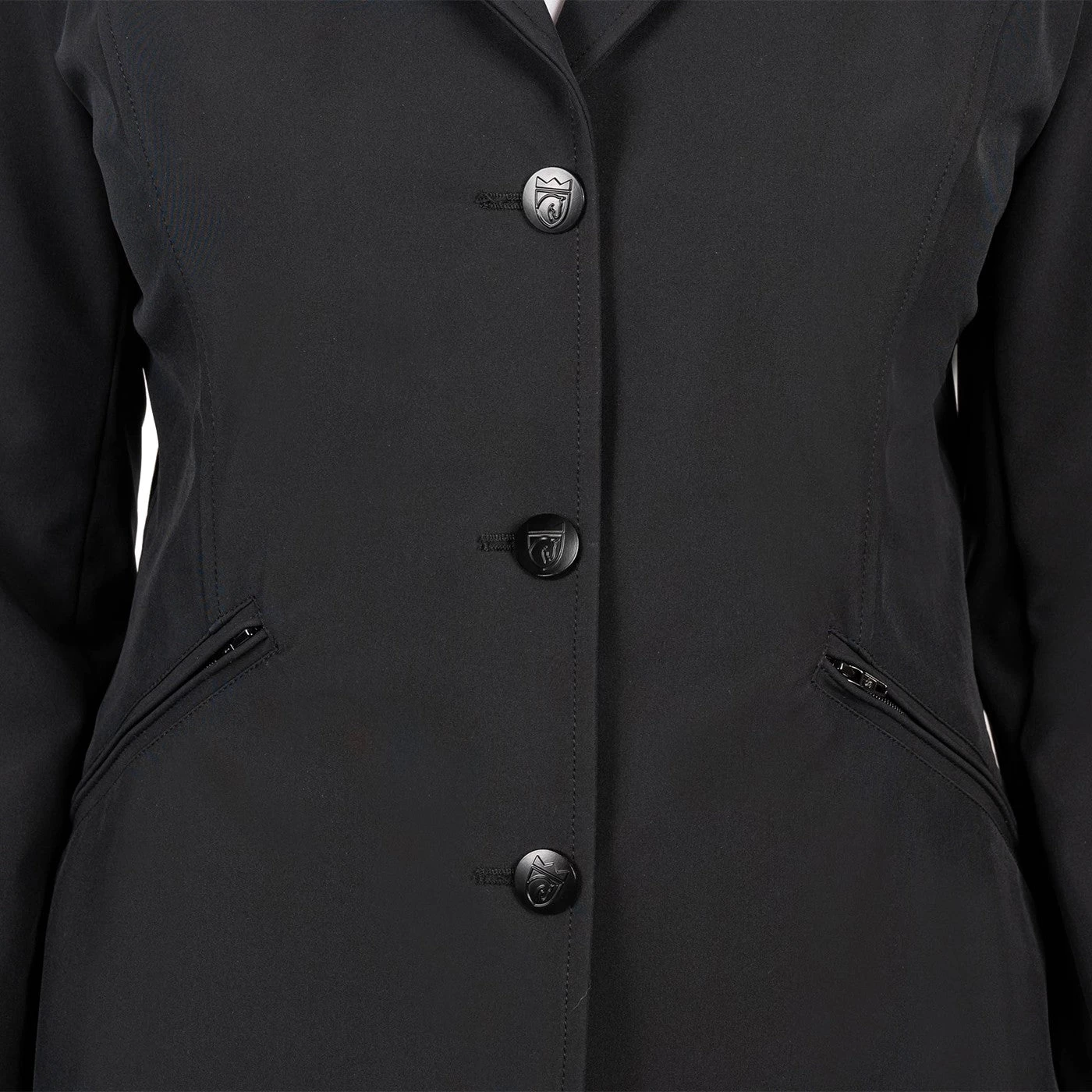 The Elation Platinum Rimini Show Jacket offers a classic, and elegant piece for the competition ring. Made from a lightweight, stretch softshell material for full range of motion and comfort in and out of the saddle. Features an unlined finish to help eliminate bulk, and a waterproof, and breathable construction. Complete with a back vent, zippered pockets, and a 3-button closure. Machine washable.