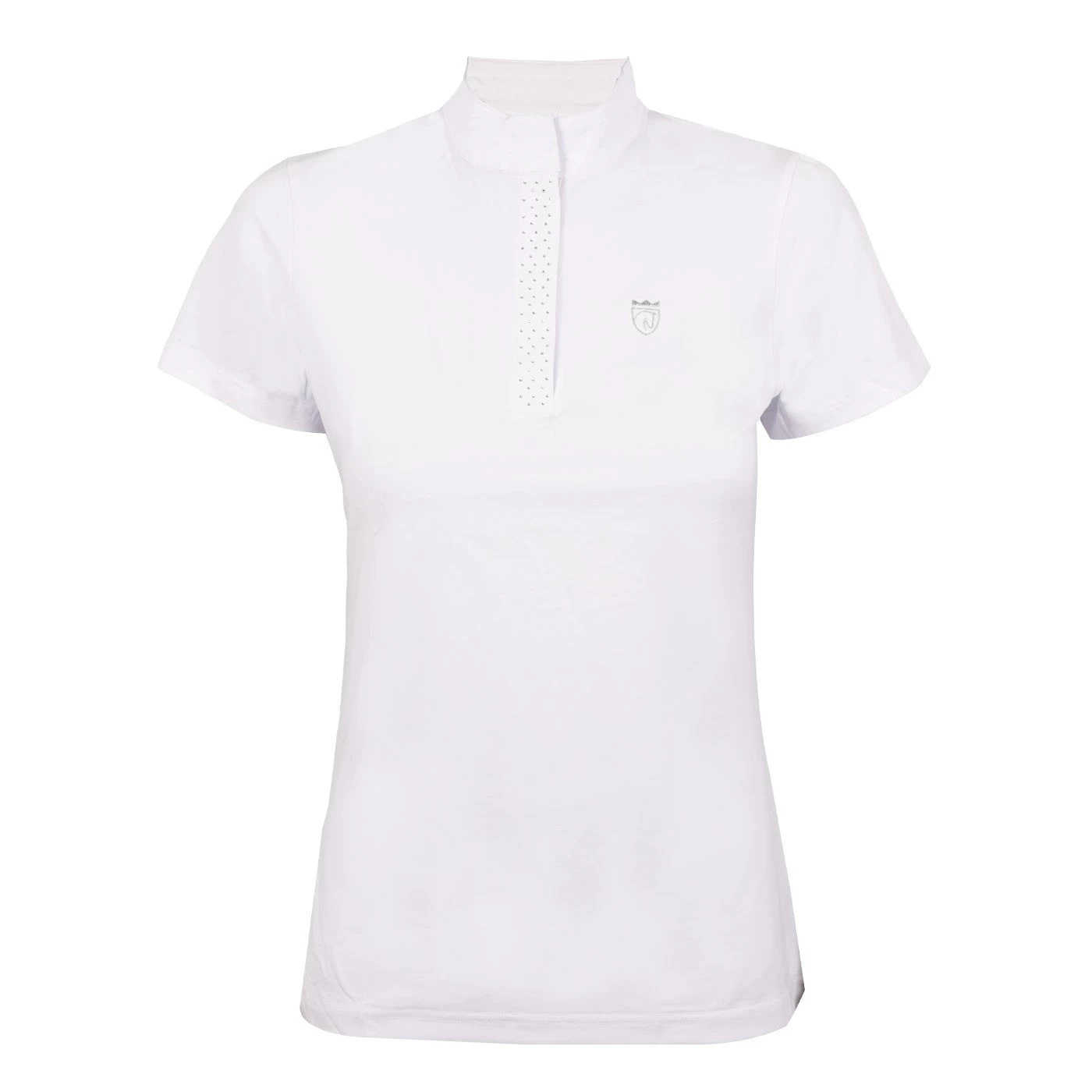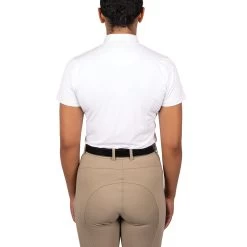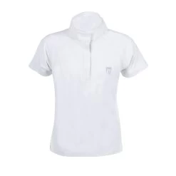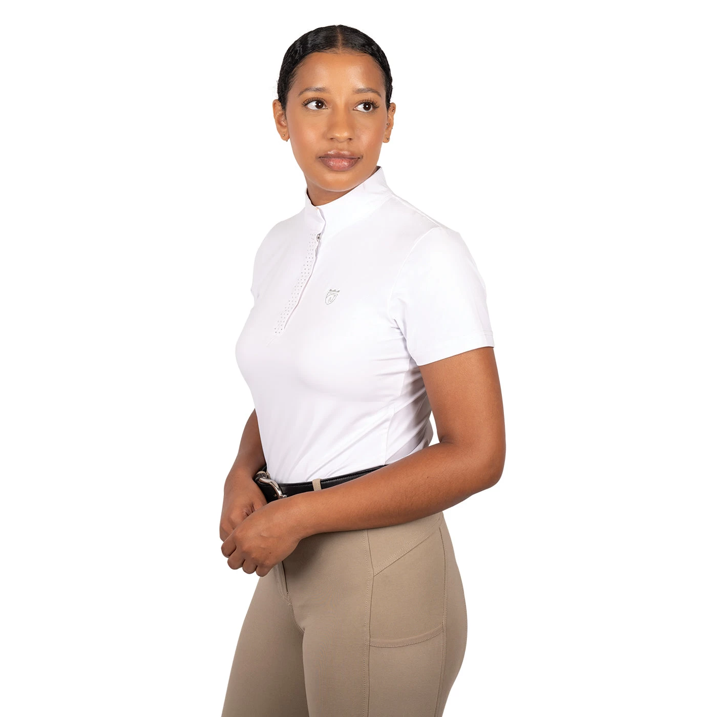 The Elation Platinum Vittoria Short Sleeve Show Shirt offers all day comfort in the saddle with TACTEL® fiber for a lightweight, and breathable feel. Features a quick-drying construction and stretch for added comfort. Complete with diamante trim at the neck and cuff, and a covered zip plaquette.