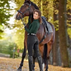Fashionable high waisted thermal softshell winter breeches with a wind- and water-proof outer shell that offers extra coverage from the elements. A silicone full seat enhances grip in the saddle and the elastic leg cuff fits smoothly in boots and half chaps. Complete with belt loops and 2 convenient slide-in mobile phone pockets. Outer material: 74% polyamide, 26% elastane, Inner material: 92% polyester, 8% elastane.