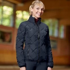 Sleek, ultra-lightweight quilted jacket with a flattering fitted silhouette crafted in breathable fabric for all-day comfort. Complete with a 2-way front zipper, 2 front zippered pockets, and elastic cuffs, the ELT Monza jacket keeps you looking professional both in the saddle and during everyday activities. Material: 100% polyester, Padding: 100% polyester, Lining: 100% polyester.