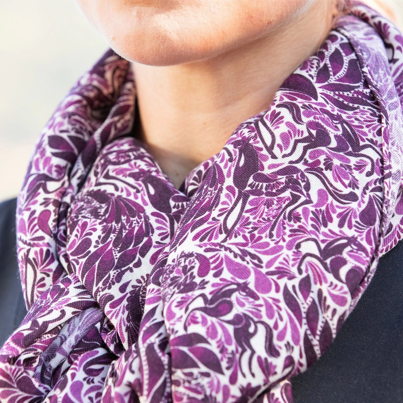 The EQL Wrap It Up Scarf will elevate any outfit and bring you from the farm, into town! Enjoy endless ways to wear this gentle scarf, designed with equine-inspired prints. The Modal fabric is made from sustainably harvested beech tree pulp that uses 20 times less water than cotton – and feels great too!