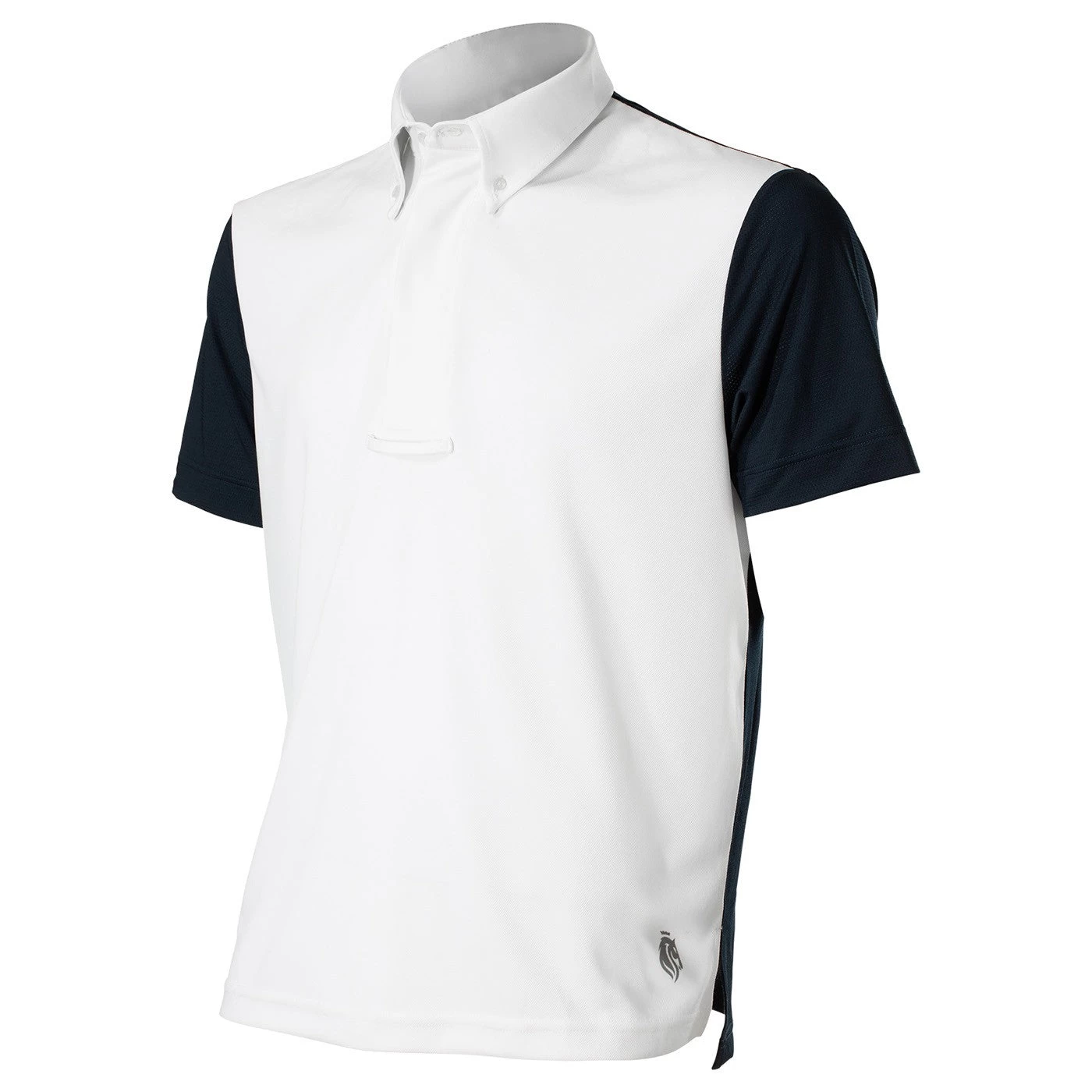 The Equinavia Haakon Show Shirt is traditional in look, featuring a button down collar with a covered, 4-button placket with a tie and loop for show days. Lightweight and breathable for warmer days with a short sleeve construction. Slightly fitted for wear under a show coat.