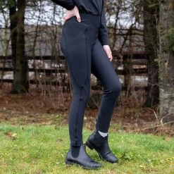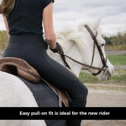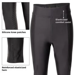 The Everyday Essential Tight offers the perfect tight for the beginner rider or those looking for added comfort in the saddle. Constructed from stretch fabric with reinforced elastic to help them stay securely in place. Feature silicone knee patches for added grip in the saddle, and are complete with a covered, elasticized waistband, and a Euro seat.