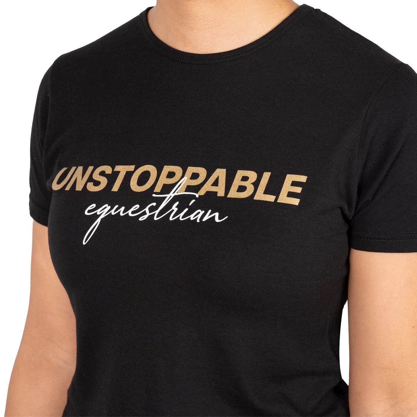 Halter Equestrian’s new bamboo Unstoppable Tee is eco-friendly and made with combed and ring-spun bamboo. Each tee is are irresistibly soft, making them our softest equestrian t-shirts yet. Blended with naturally sustainable materials (Bamboo and Organic Cotton), which makes them hypo-allergenic, anti-bacterial and UV resistant. Feel comfortable year round in these naturally moisture wicking equestrian t-shirts. Beautifully designed with a stylish, custom designed “Unstoppable Equestrian” motif on the chest. Made for riding, living and lounging in. Lovingly made in Canada. Pre-washed and pre-shrunk. Made from 70% rayon from bamboo and 30% organic cotton.