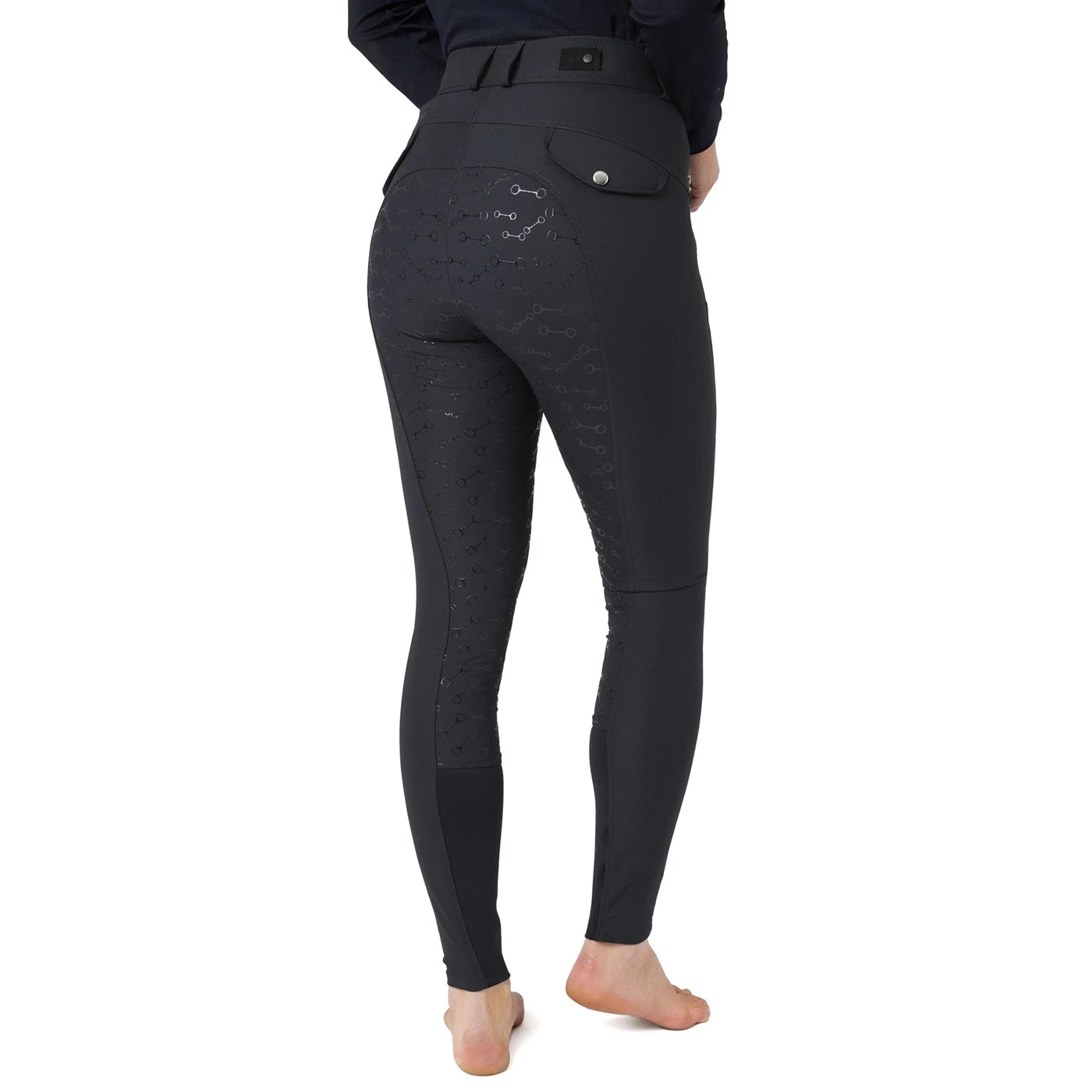 The Horze Andrea breech is decorated with flattering seams down the front to help elongate your legs. Features a higher rise waistband with three buttons for added style. Complete with two zipper pockets and a silicone full seat for added grip in the saddle.