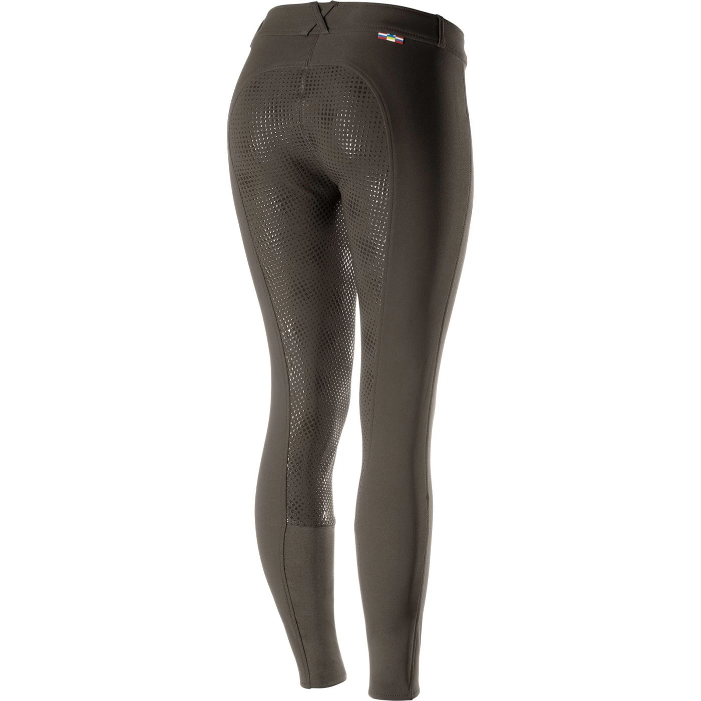 Suitable for showing or schooling, the Horze Grand Prix Silicone Full Seat Breech is designed with function in mind. Featuring a high-quality silicone printed full seat to help enhance your grip in the saddle so you can ride with confidence. Created in a high performance, breathable fabric that provides UV protection and is water and dirt repellent. Designed with elasticized leg bottoms and a flattering medium rise fit with the waistband slightly higher in the back for enhanced support and comfort. Front zip, belt loops and streamlined seaming lend a sleek appearance. 93% polyamide/7% elastane. Machine Washable.