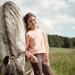 The Horze Morgan longsleeve shirt for kids is made from super soft material. The easy fit is comfortable for riding or every day. Pretty colours and the Morgan design adds fun to little riders’ wardrobes. Pair this shirt with the rest of the Horze Morgan range for a full outfit!