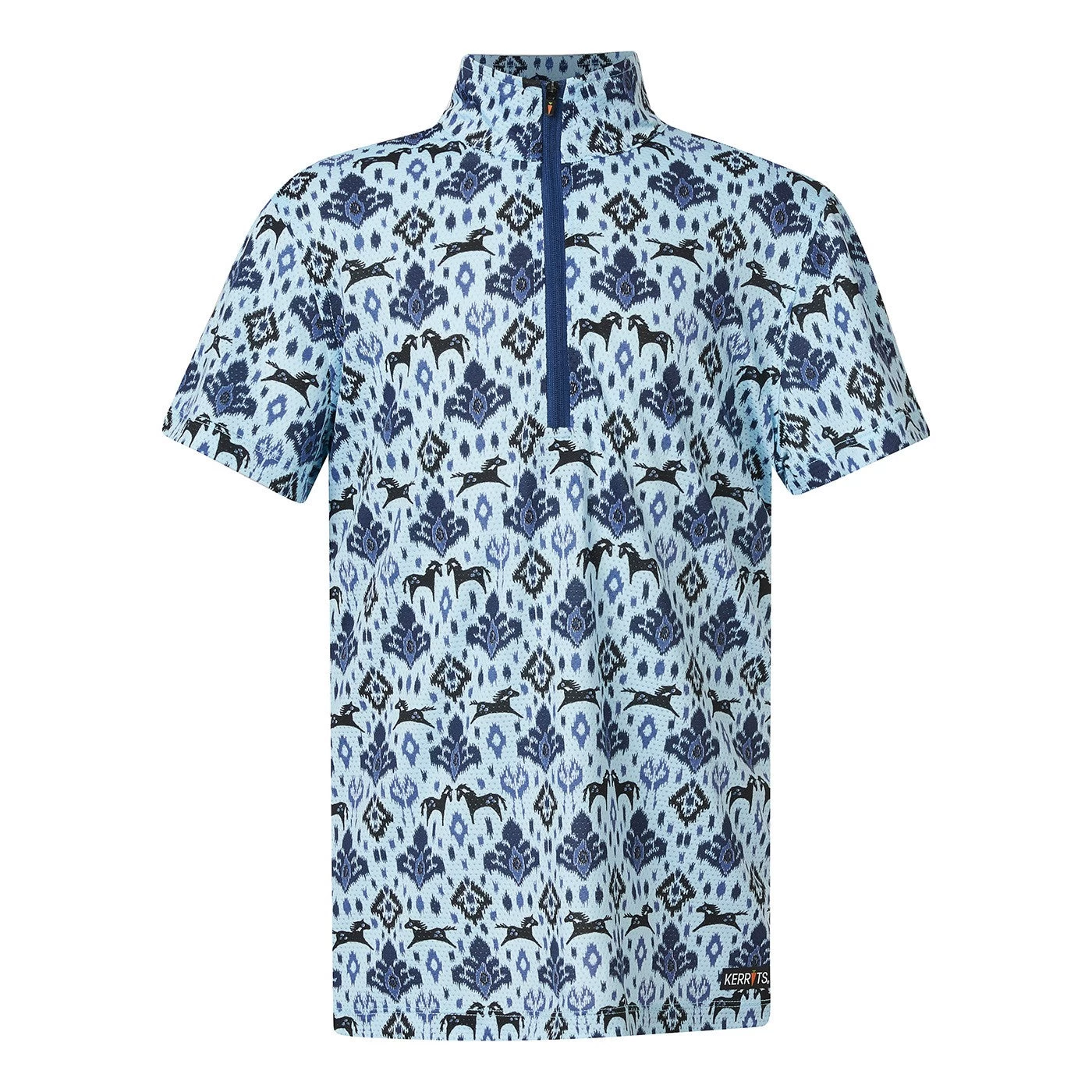 Pony kids will live in these playful prints that not only hide horsey details like stirrups and horseshoes within the pattern, but also hide dirt. They’ll love the featherlight, stretchy feel of the Ice Fil® fabric as it keeps them cool. Built-in UPF+30 and a high collar helps to protect from the sun, and an eight-inch zip helps to adjust ventilation. Complete with short sleeve construction for added protection from the elements.