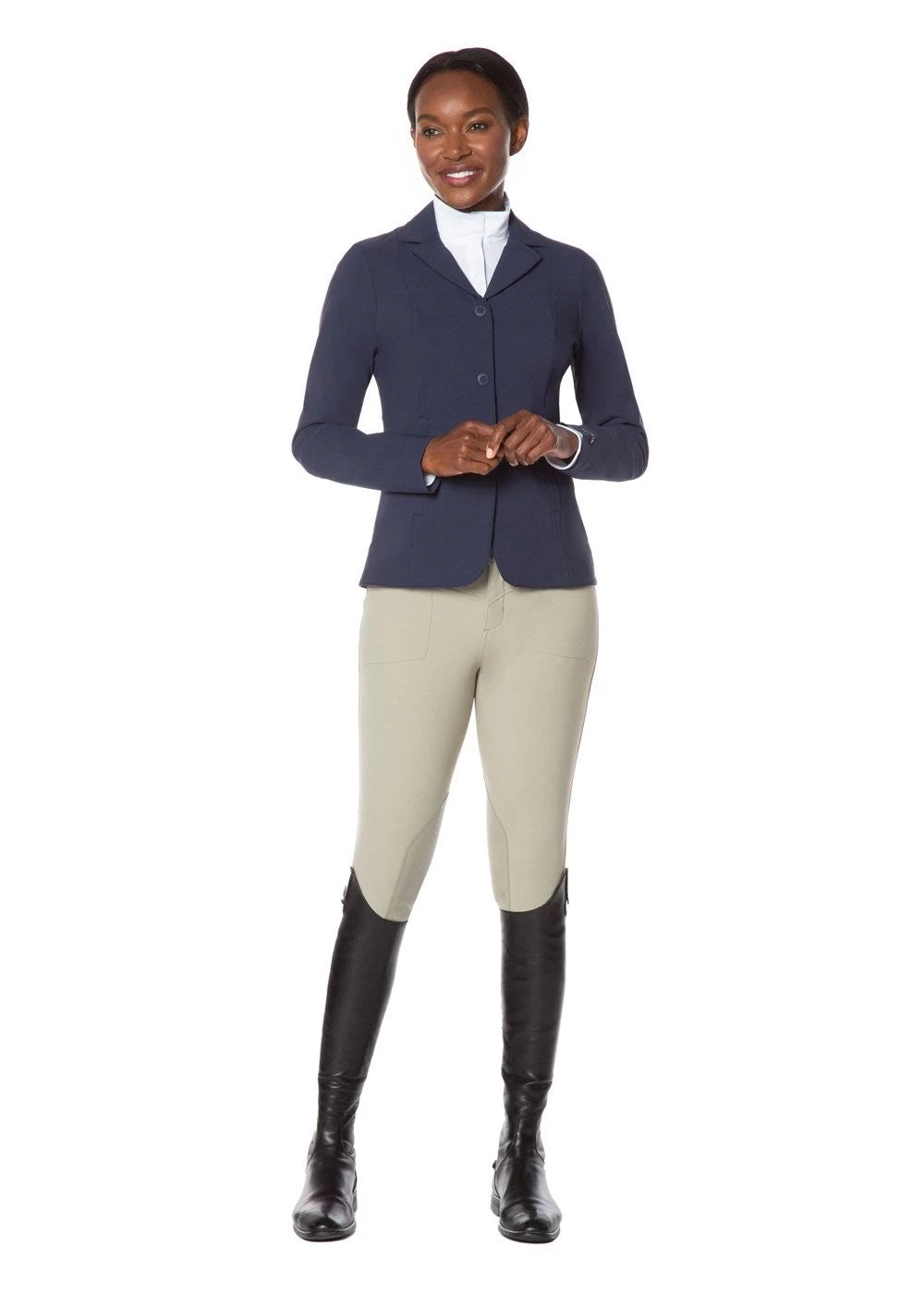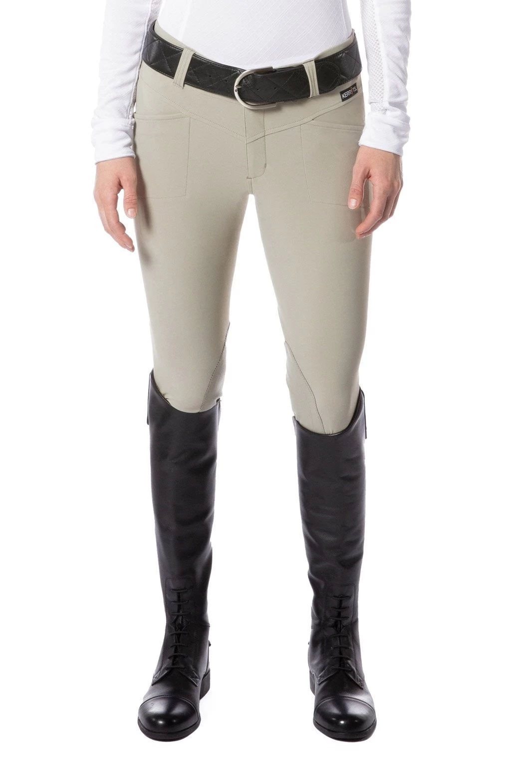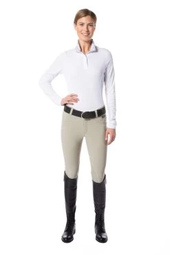 Lightest stretch-woven riding breech newly updated with GripSoft™ for leather-like security in a soft, flexible knee patch. Perfectly engineered to stand up to the rigors of everyday riding, this breech breathes and wicks while providing flattering lightweight coverage. While the material is high-tech, the style is classic, with a flattering, tailored look enhanced by a two-snap front fly and belt loops.