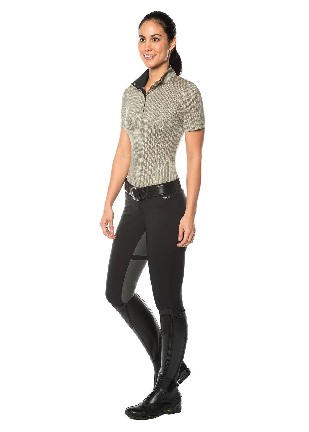 A summer favorite made even more comfortable by updating the full seat with GripSoft™, providing a velvety feel next to skin, and a flexible, secure mid-level grip in the saddle. The Dynamic Extreme™ fabric wicks and breathes to keep you cool, with stretch woven coverage that fits and flatters. Front pockets, belt loops and a two-snap front fly create a tailored breech perfect for everyday riding.