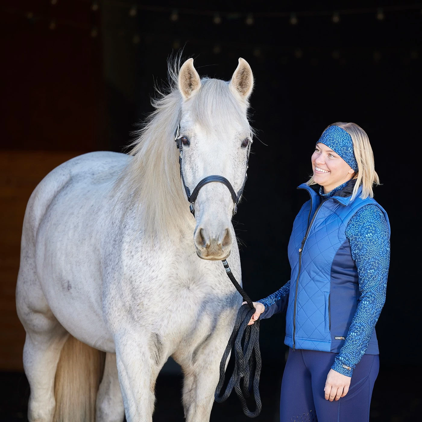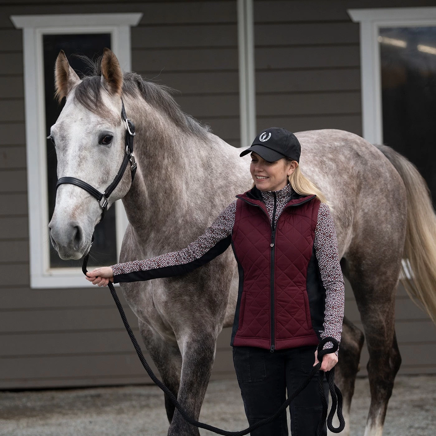 The Kerrits Full Motion Vest is perfect for cold weather layering! The softshell stretch panels down the sides and across the lower back are key to unrestricted movement, while the classically quilted core insulates for a versatile, wind and water repellent, three season essential. Complete with a tall, plush lined collar, fun horse print lining, zip handwarmer pockets and two-way front zip for in-saddle performance.