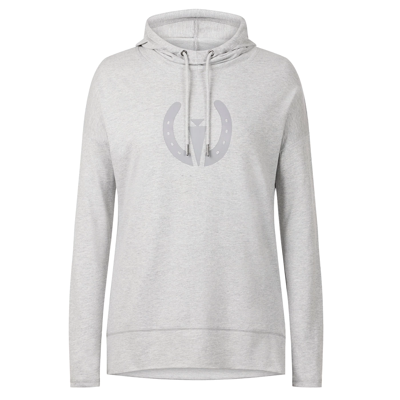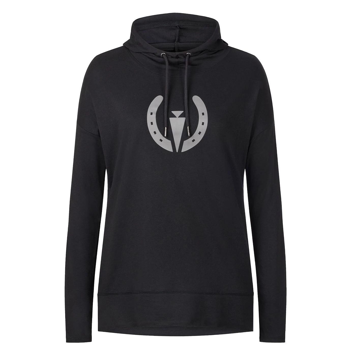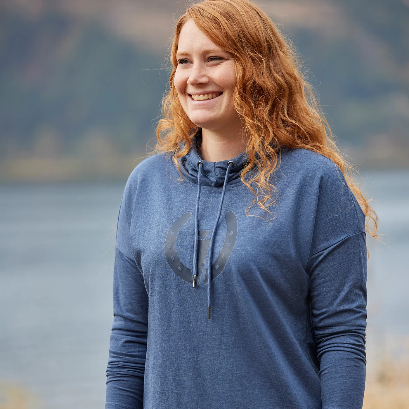 Online exclusive! The Kerrits Logo Hoodie is perfect for fall. This lightweight hooded sweatshirt features a slightly longer, tunic length hem for hip coverage. Features a pullover style, drawcord hood, and a Kerrits horseshoe logo on the chest. Made from 70% cotton/30% polyester.