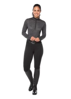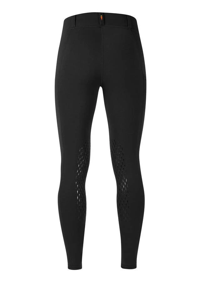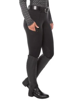 The Kerrits Power Stretch Pocket Winter Tights are perfect to wear during cold weather rides or doing winter barn chores. Featuring a cozy thermal weight brushed Polartec fleece lining and a matte exterior that sheds hay and horsehair. Kerrits Sticks silicon knee patches provide exceptional grip in the saddle. Stretchy and durable for optimal comfort and complete with a wide elastic waistband, belt loops and a secure zipper pocket for added function. Ideal to wear on their own or as an insulator layer. Machine washable.
