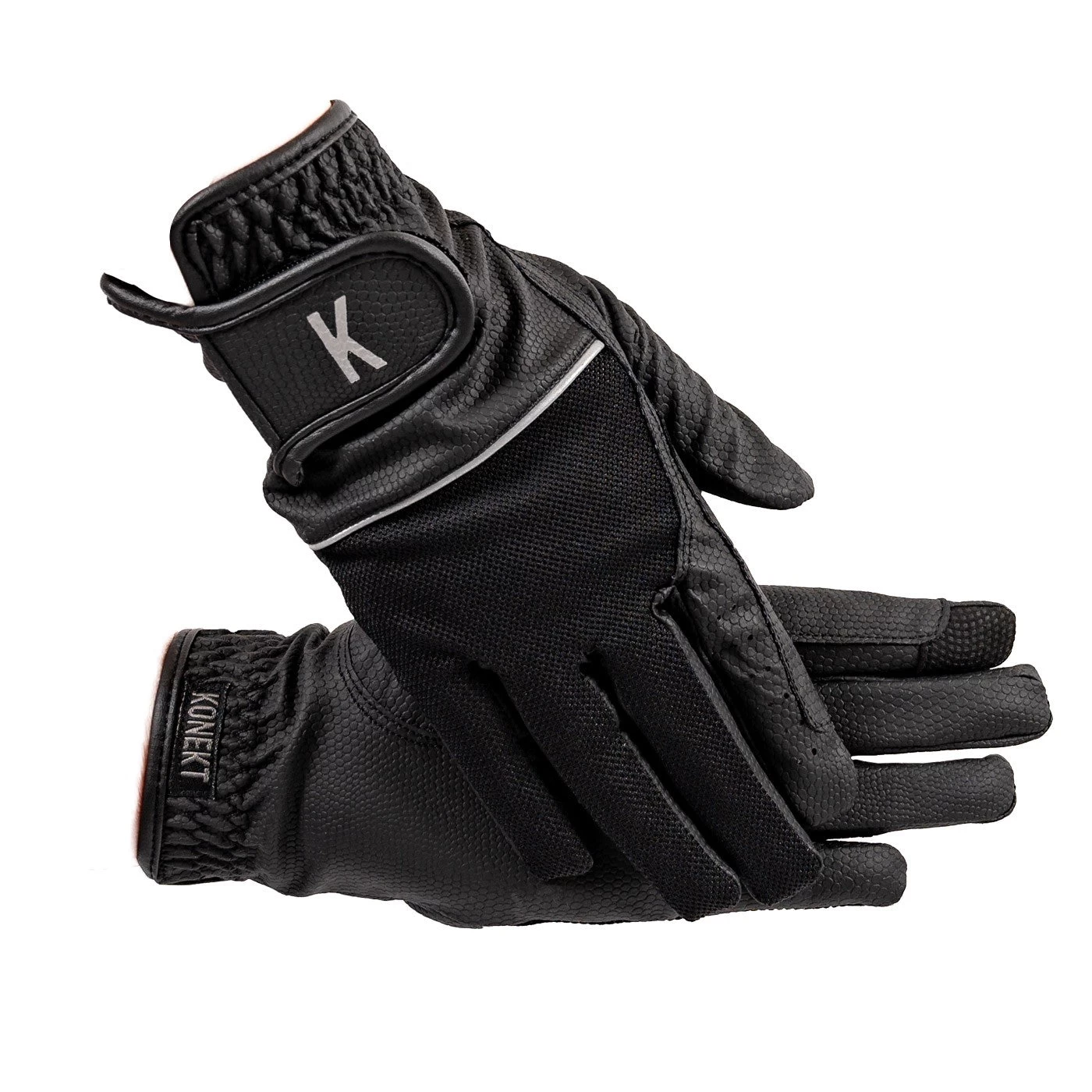 Lightweight riding glove designed for hot weather riding with a breathable stretchy mesh back. The grip palm incorporates tech touch, allowing you to use your touchscreen phone without taking off your gloves. Complete with an elasticized wrist with Velcro closure and reflective piping.