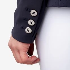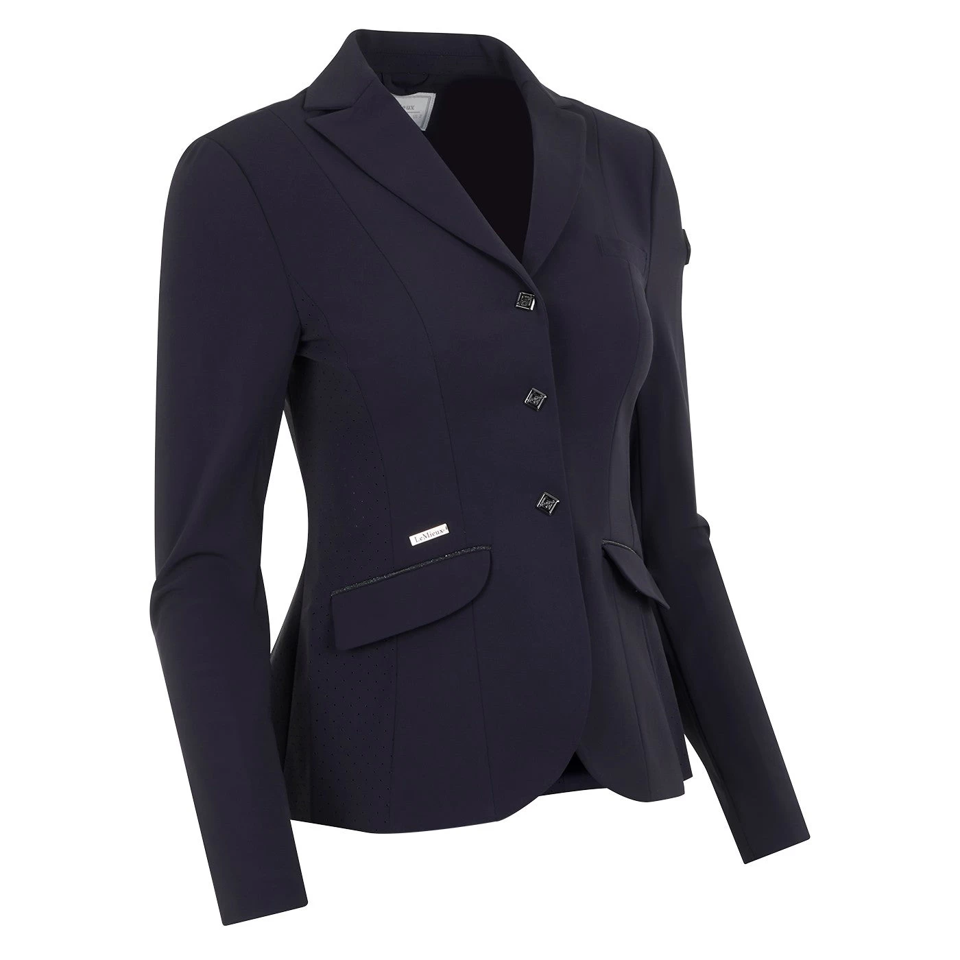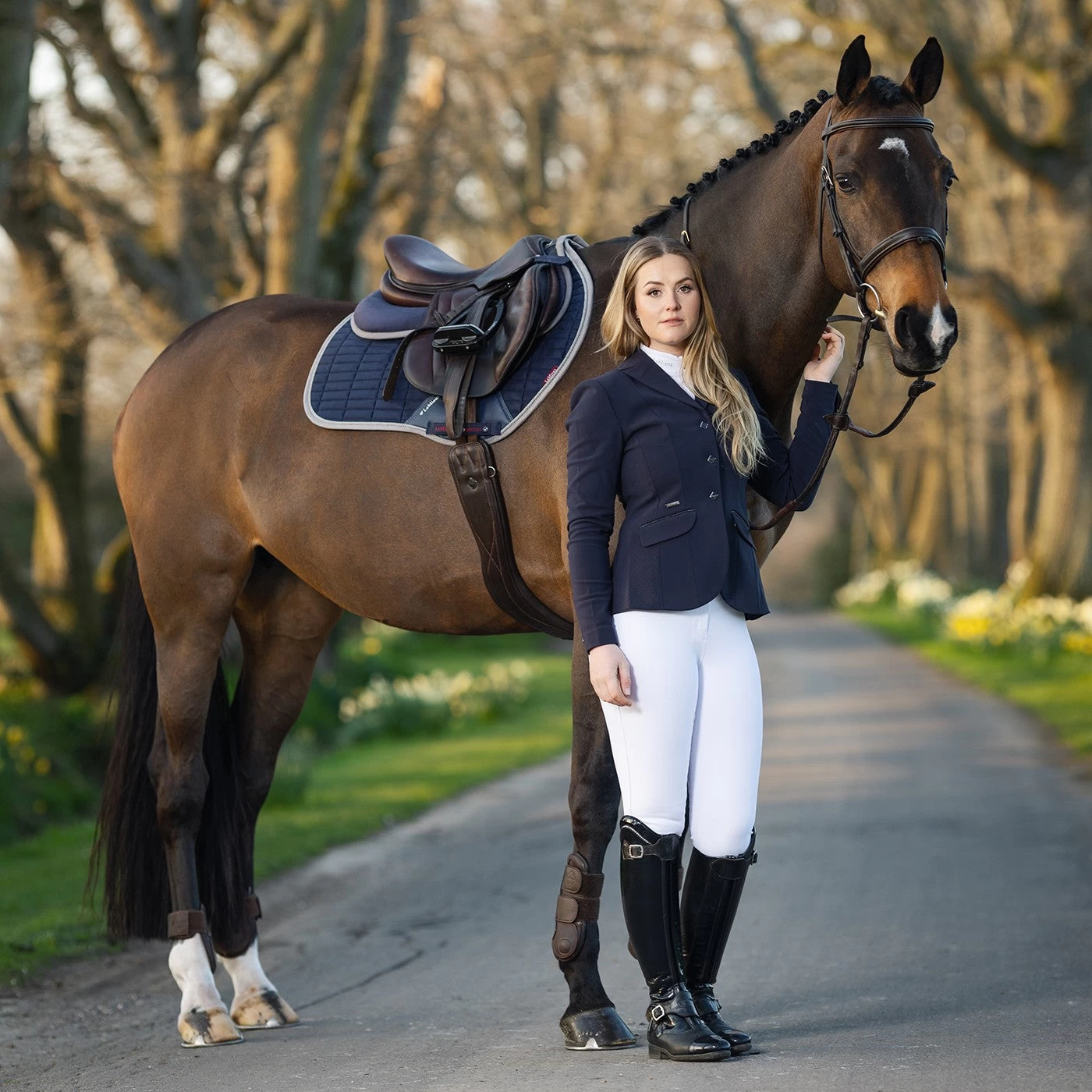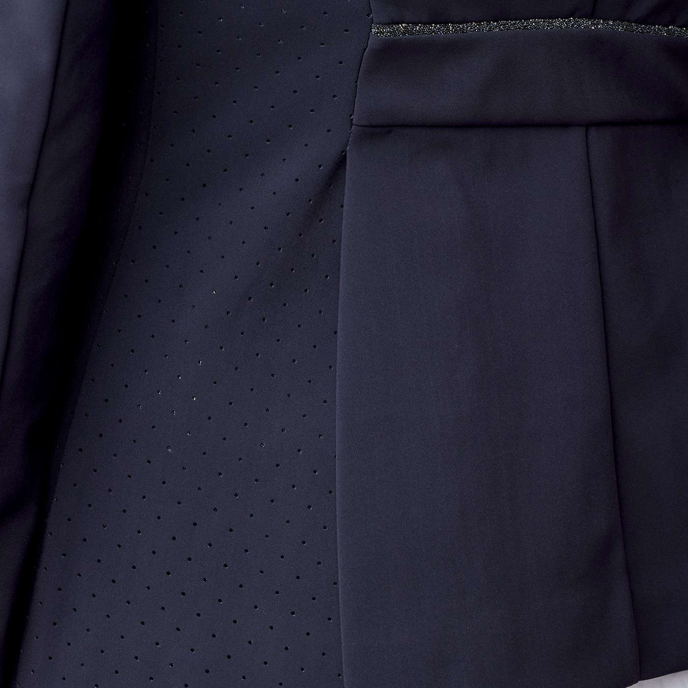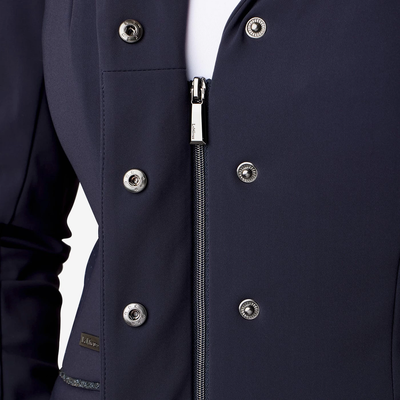 The stunning new Dynamique Show Jacket has been designed with your competition performance in mind. Vented side panels and sports mesh lining to the front provide the ultimate breathability, combined with superior stretch and recovery so that the rider is unrestricted and free to move. A subtle beaded trims on pocket edges and back belt panel add a touch of luxury sparkle and creates a flattering silhouette and stylish appearance. Fastened with a front zip and custom LeMieux press stud for stunning practicality, this Show Jacket is a must-have for all competition riders.