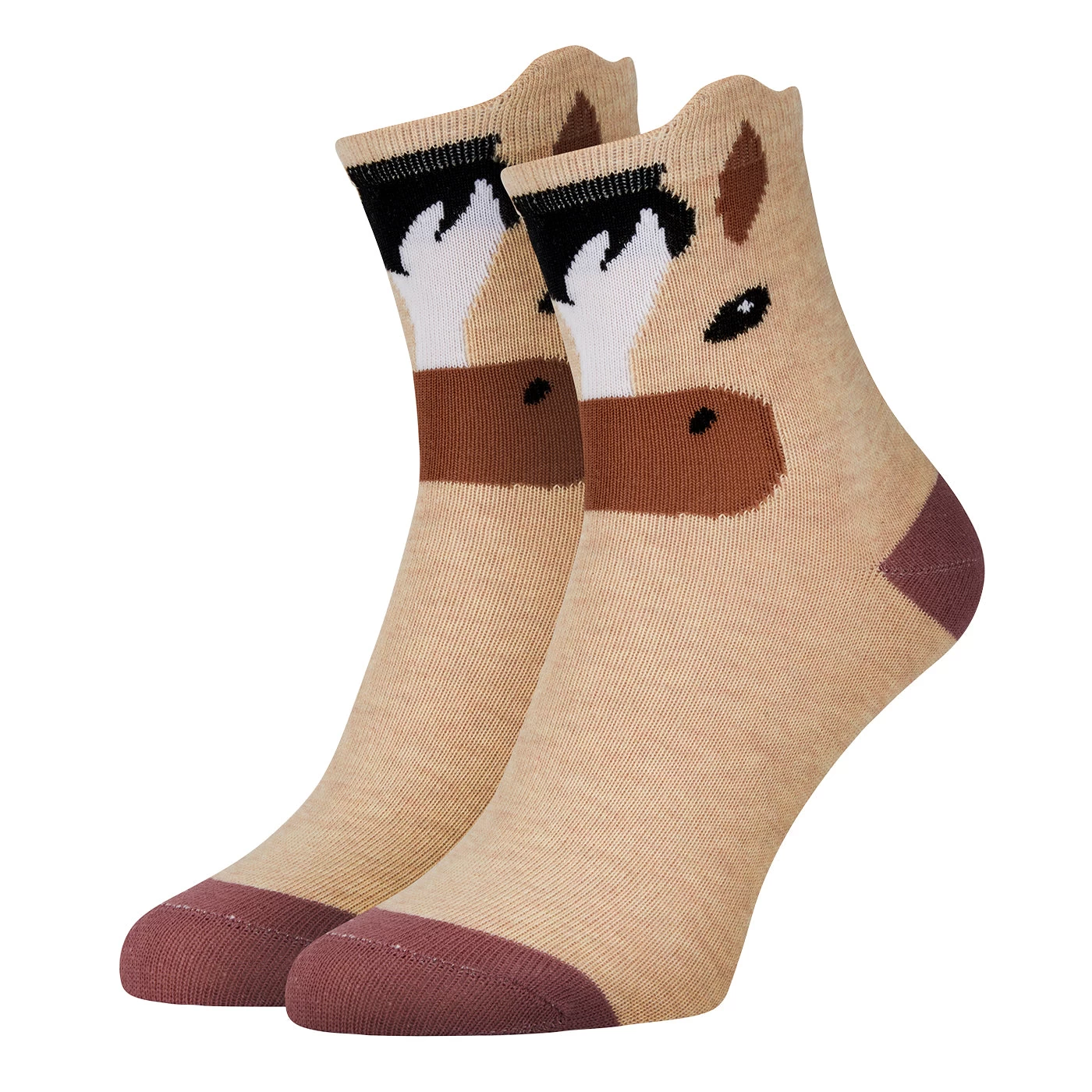 These super cute cotton jacquard ankle socks are the perfect way to keep toes toasty! With two fun designs – one with a palomino show horse and one with an all-over polka dot print – these character socks are soft, warm, and tonnes of fun for little feet!