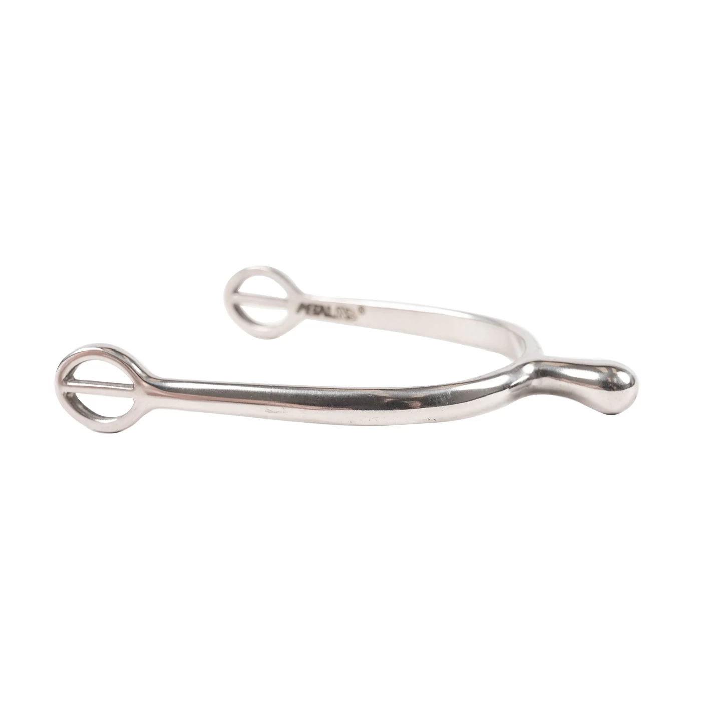 Sized to fit ladies’ boot sizes, these Prince of Wales spurs are crafted with sturdy yet lightweight stainless steel. Each spur features a 3/4″ neck and German style rounded ends. These spurs are an excellent choice for everyday riding, but have a slightly gentler action than a traditional Prince of Wales spur. Sold as a pair. Spur straps sold separately.