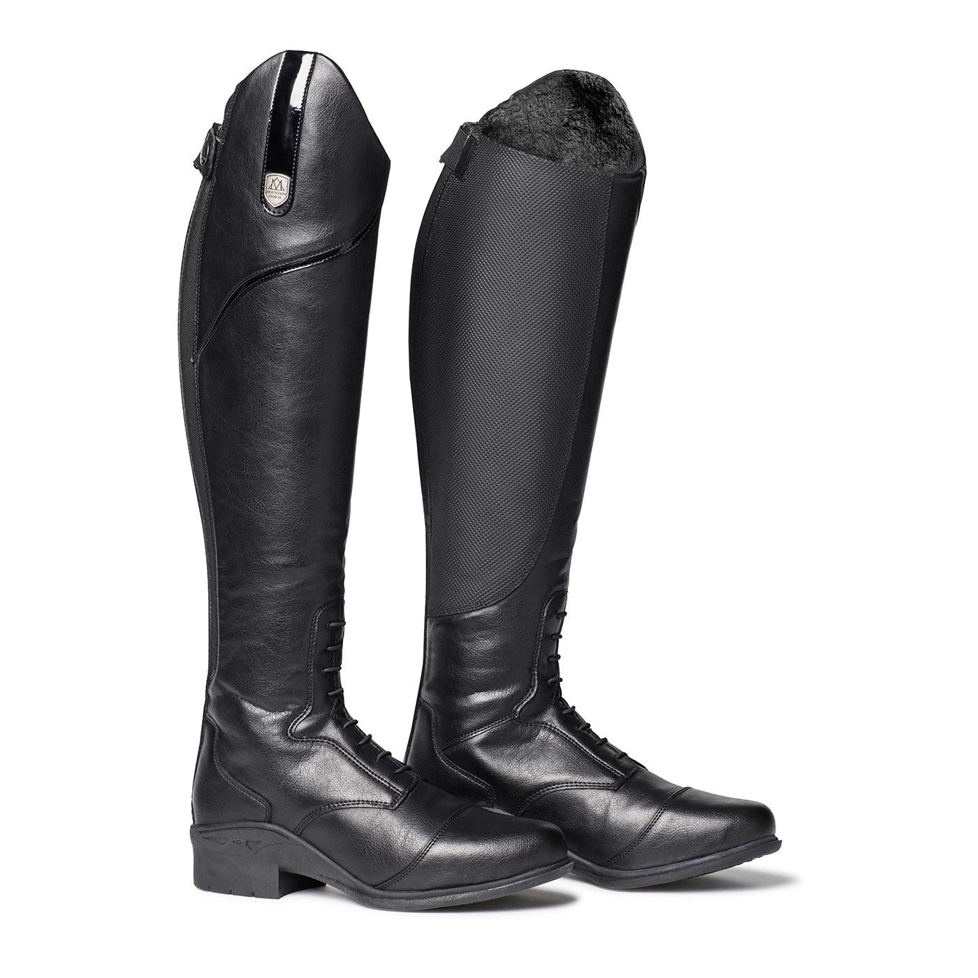 Stylish waterproof winter riding boots with a warm faux fur lining help keep your feet warm during cold-weather lessons. Vegan imitation leather upper contributes to the traditional look of the boot and the moisture-wicking synthetic lining helps enhance warmth and comfort. Patented Vertycore sole system offers the utmost comfort and support while diagonally inverted contour grip system offers more stability in the saddle. Complete with a durable YKK coil zipper.