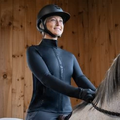The Nikara Training Jacket is perfect for layering while schooling, or for throwing over a show shirt during early morning rides. Constructed with an advanced, stretchy, and quick-dry technical fabric to help keep you cool and comfortable. Complete with a full zip front, and 2 zippered pockets.
