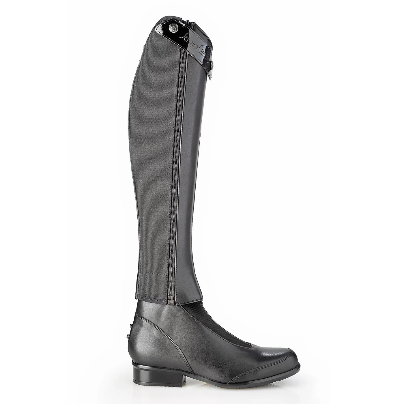 The newest addition to the Sergio Grasso family, the EcoRiding collection is made from innovative, environmentally-friendly, non-animal based materials. The EcoRiding Easy Half Chaps are made from a soft microfiber that provides the performance and feel of a classic leather half chap while being 100% waterproof, breathable, abrasion-resistant and antibacterial. With an exterior elastic panel and side zipper, these half chaps are as comfortable as they are functional. Featuring an innovative invisible boot fastening system, these half chaps are only compatible with the EcoRiding Quick Paddock Boots. Made with a focus on sustainability and environmental impact.