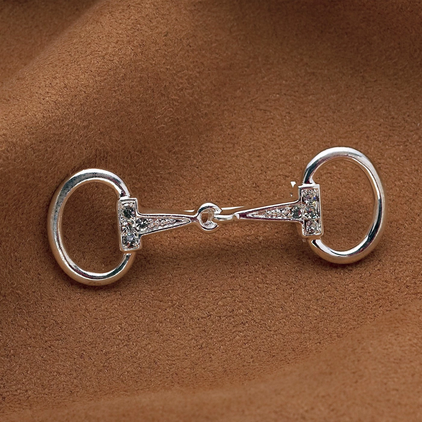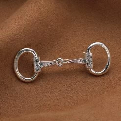 Add a little personality to your traditional show attire with the Small Rhinestone Snaffle Bit Stock Pin. This stylish pin is the perfect addition to your stock tie or to your outfit away from the horse show. Shaped like a snaffle bit and featuring rhinestones for an extra pop of sparkle. Perfect for any equestrian looking to have a little fun with their style and show off their passion!