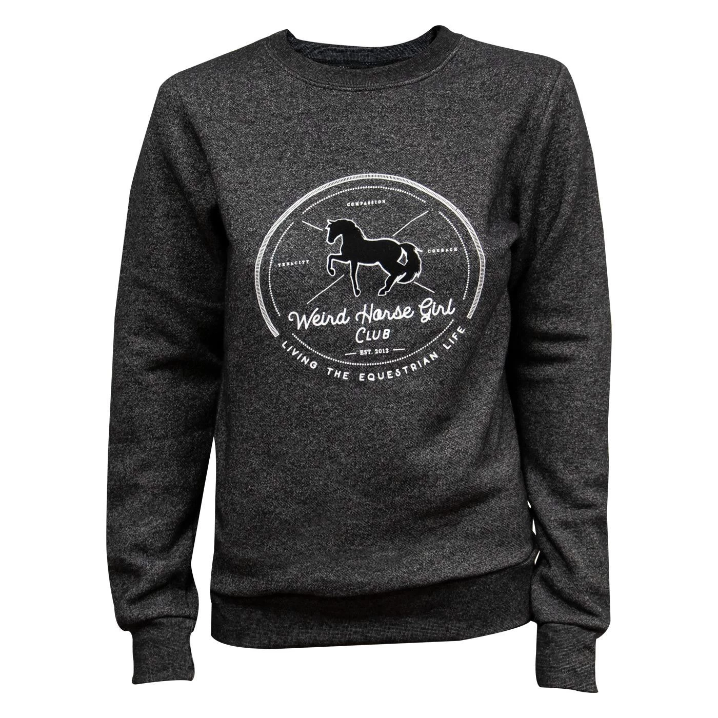This vintage varsity inspired classic sweatshirt with ribbed hemline and cuffs is the classy way to show your equestrian lifestyle pride. Perfect for layering over or under. 76% cotton, 24% polyester. Made in Canada.