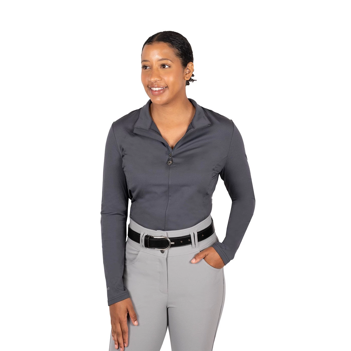 The TemTeq Ariana Top offers comfort and style with a brushed fleece lining. Suitable for everyday schooling and features a 1/4 zip front and black side panels for a slimming effect.