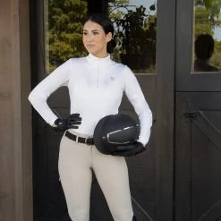 Exclusive to Greenhawk! The TemTeq Belize 2.0 Competition Quarter Zip Shirt offers UV 50 to help protect you from the sun’s harmful rays. Perfect for the show ring, and is moisture wicking, quick drying and breathable with microbial odour protection for warm weather riding. Complete with a slightly fitted finish and mesh sleeves for added air circulation.