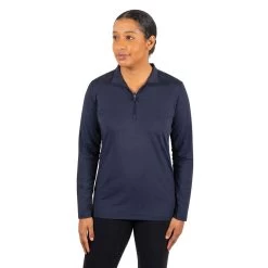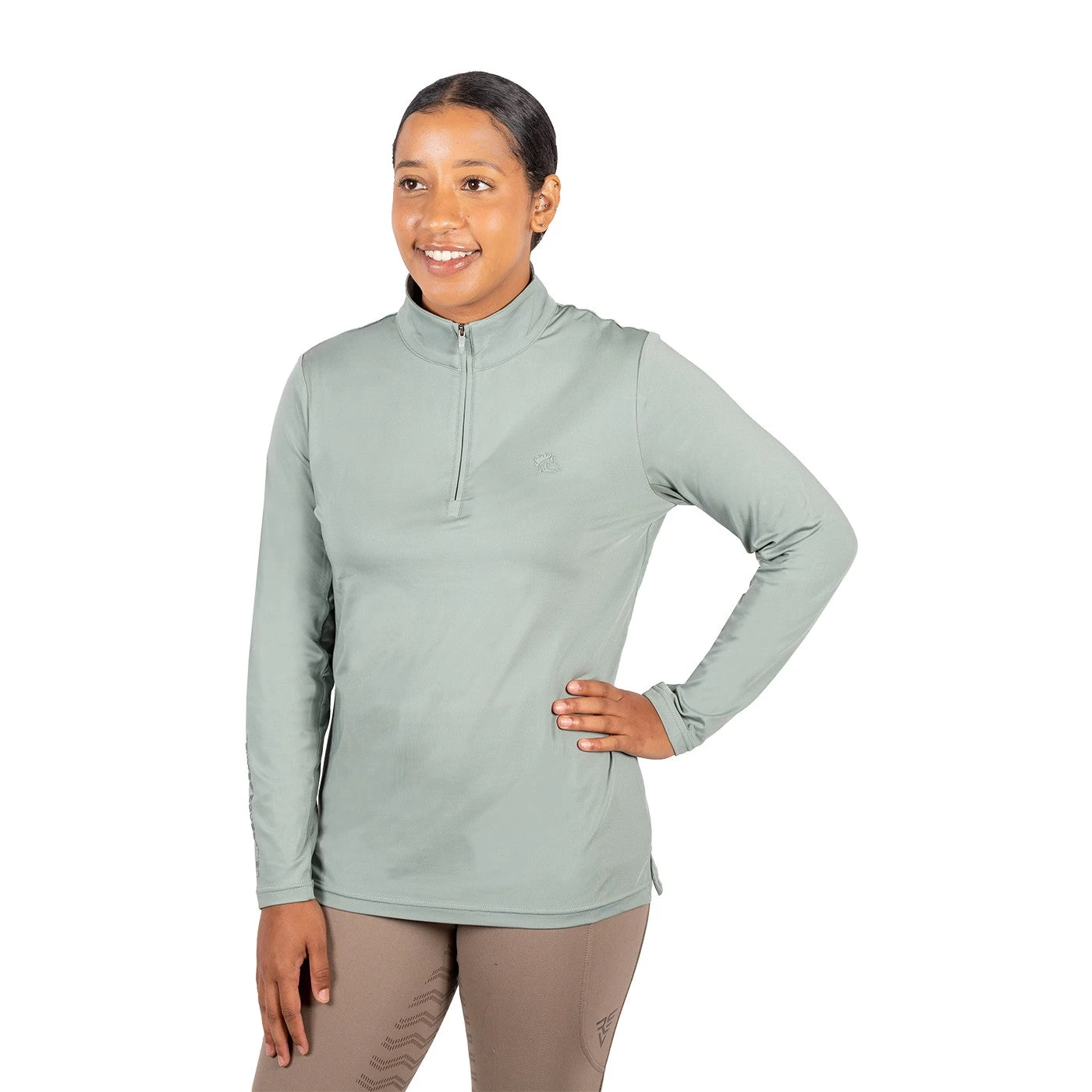 The TemTeq Equestrian Belize is a technical long sleeve sunshirt that offers UV 50 to help protect you from the sun’s harmful rays. Perfect for spring, summer and fall riding, the Belize pairs well with breeches and is moisture wicking, quick drying and breathable with microbial odour protection for warm weather riding. Complete with a quarter zip, logo on the sleeve and chest, a slightly fitted finish and mesh sleeves for added air circulation.