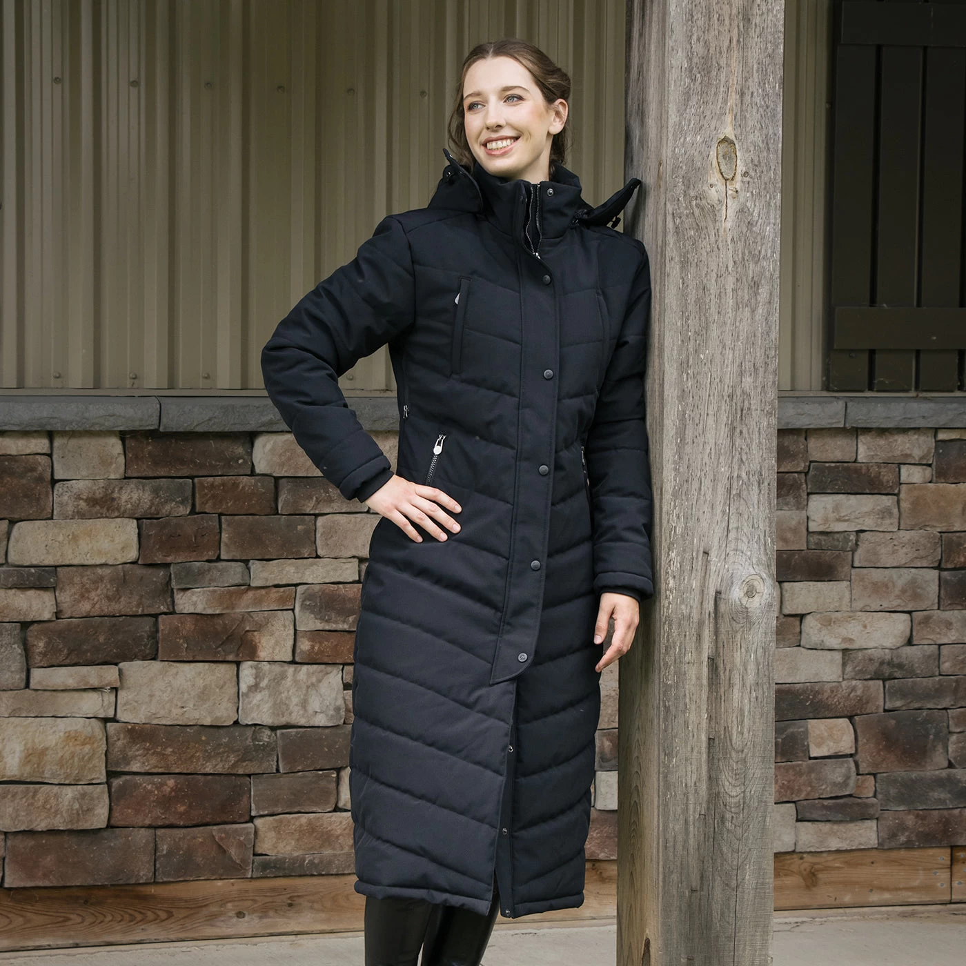 Exclusive to Greenhawk! The TemTeq Equestrian Champlain Coat offers a water repellant and windproof outer shell with a fluffy lining made from recycled fibres for added warmth. Features a detachable hood with a cozy, fleece lining a the neck, leg straps, and zippered mesh, ventilated arm holes to help make winter riding more comfortable.