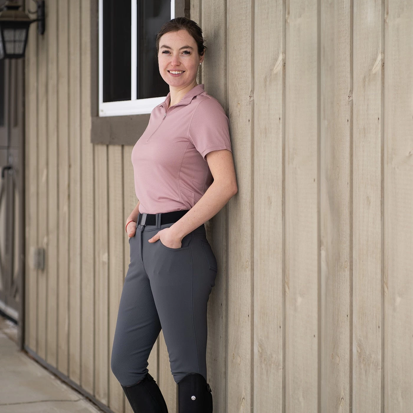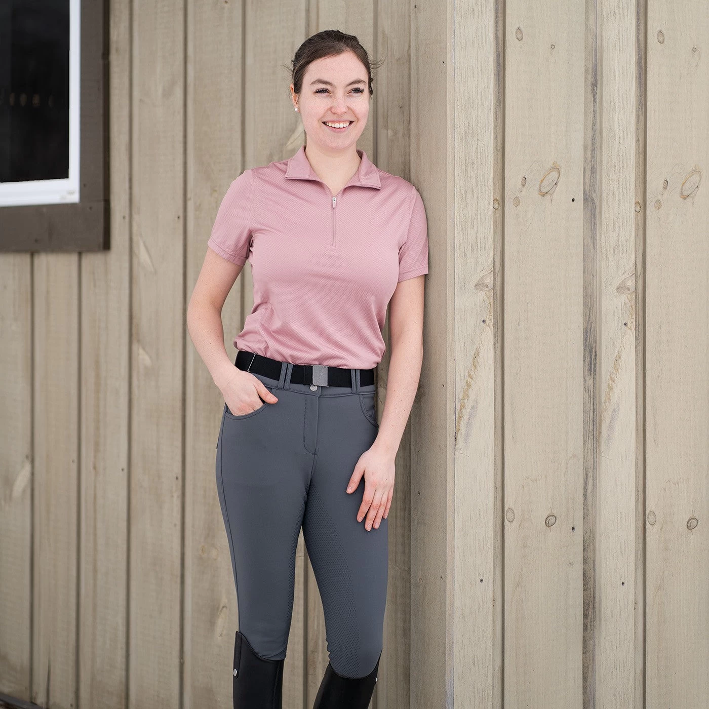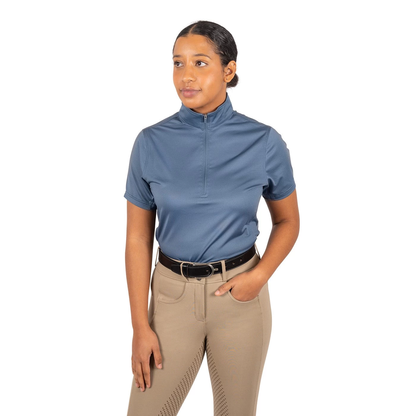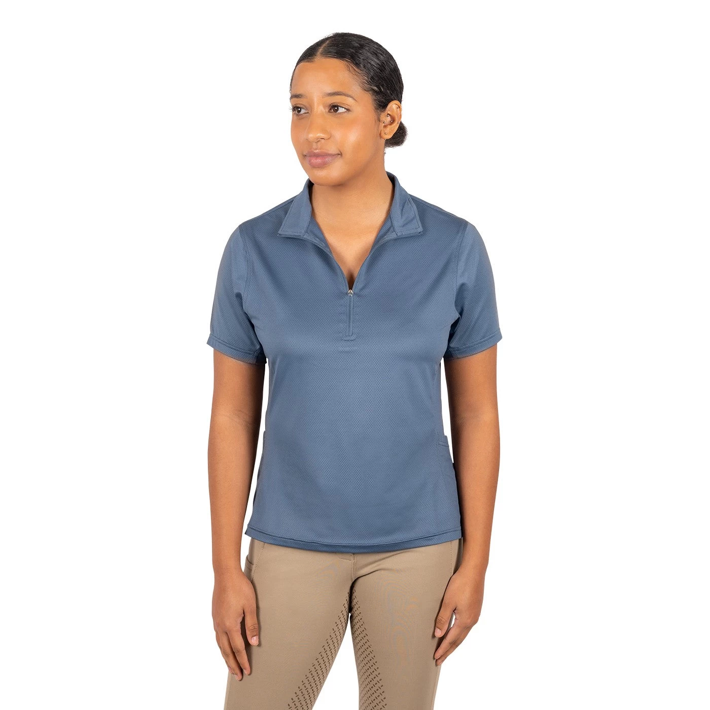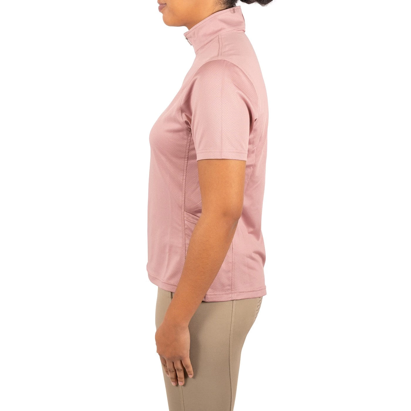 The TemTeq Equestrian Cool Tech Short Sleeve Top offers a ventilated fabric top for summer riding. Features a lightweight and breathable construction with UV 50 protection. Complete with two low-profile side pockets and a quarter zip front.